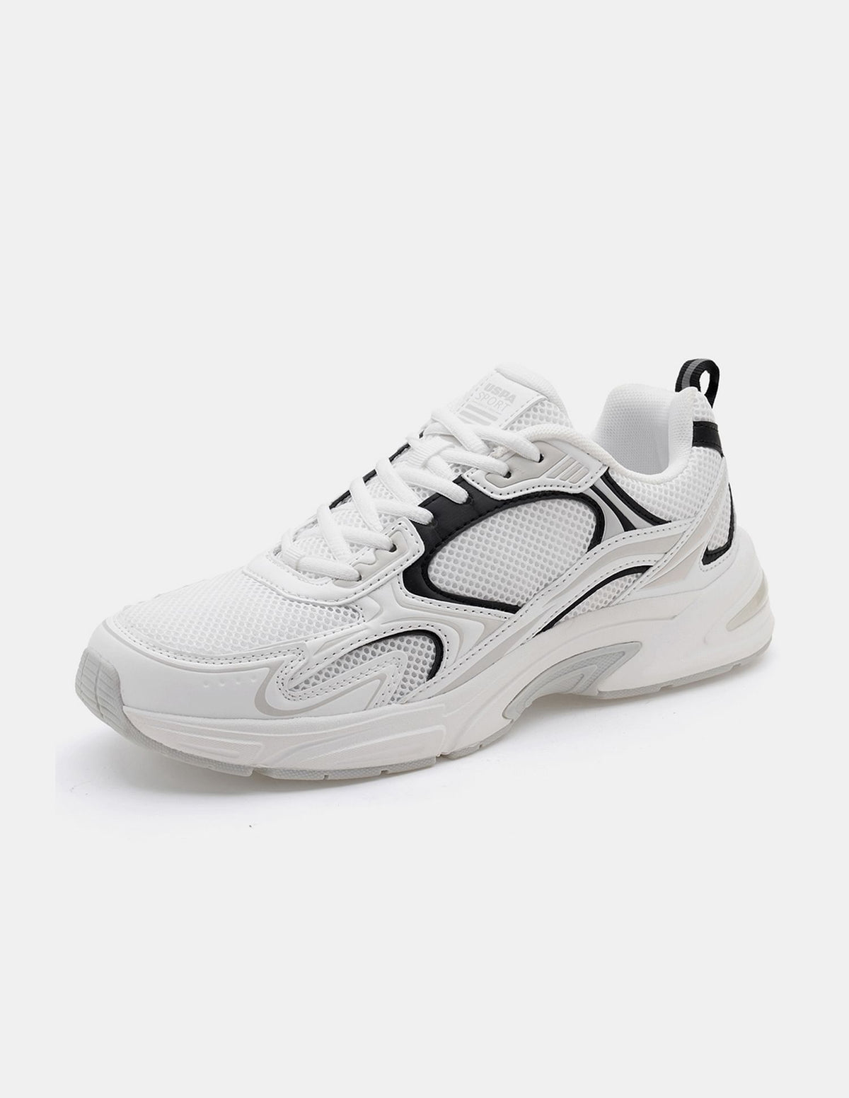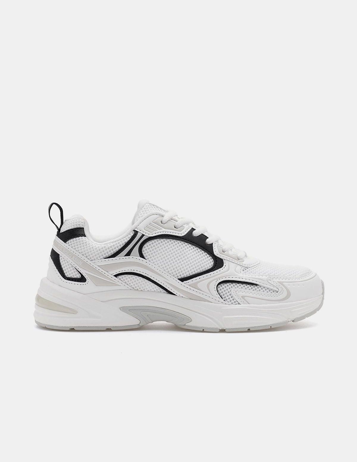 | Round toe | Central lacing | Panelled upper with logo | Padded top line | Reinforced heel counter | Cushioned insole | Textured outsole | Colourblocked pattern |