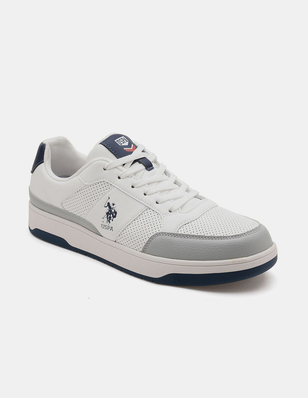 | Round toe | Central lacing | Panelled upper with logo | Padded top line | Reinforced heel counter | Cushioned insole | Textured outsole | Colourblocked pattern |