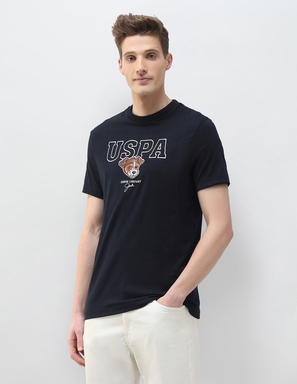- Graphic brand embroidered pattern