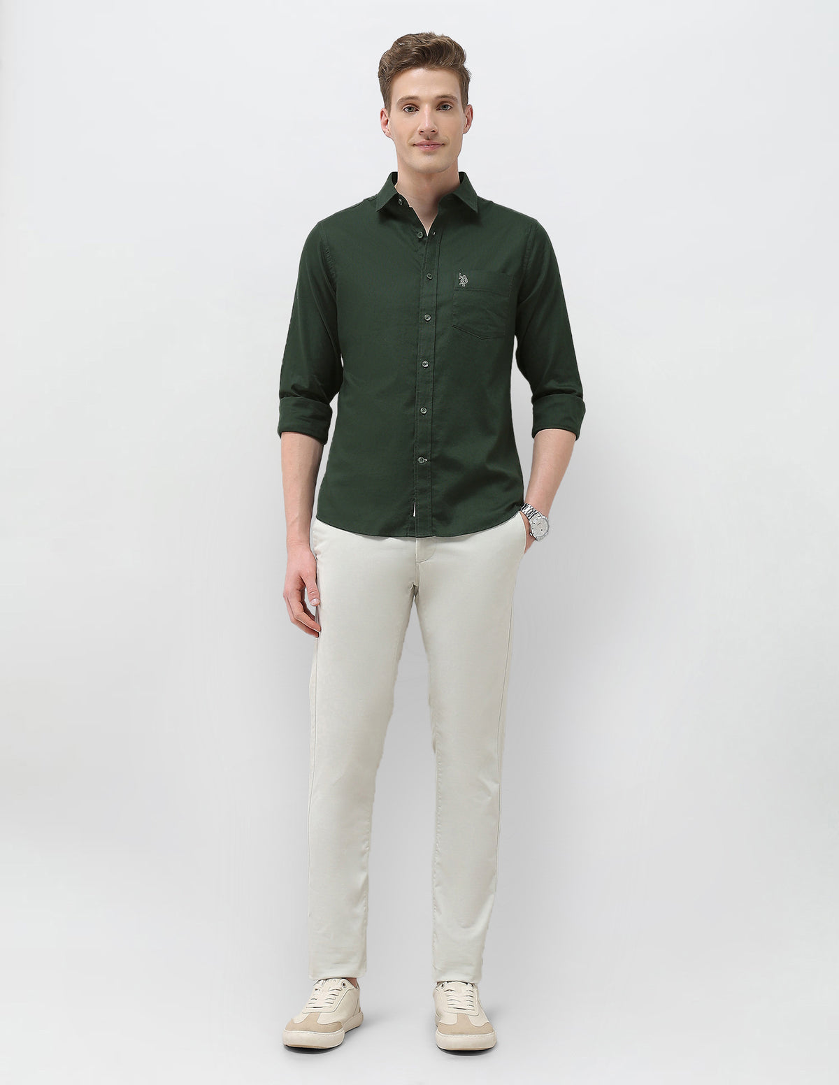 - Embroidered logo at chest pocket