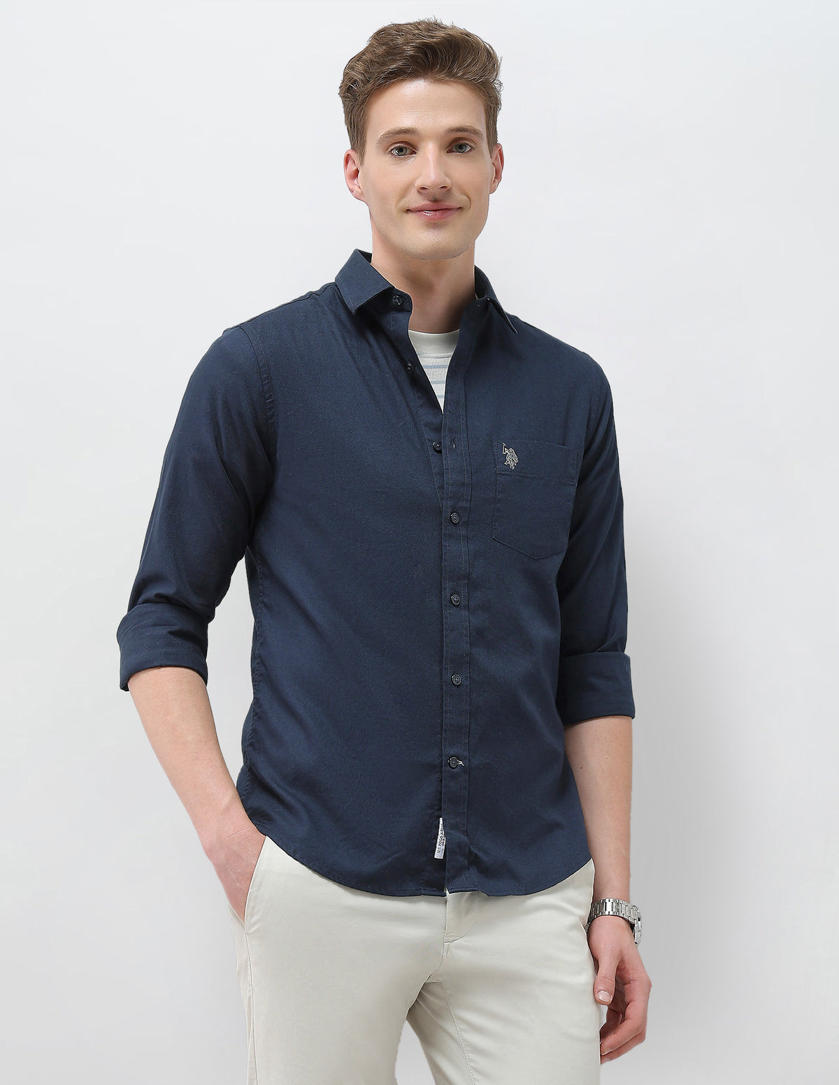 - Embroidered logo at chest pocket