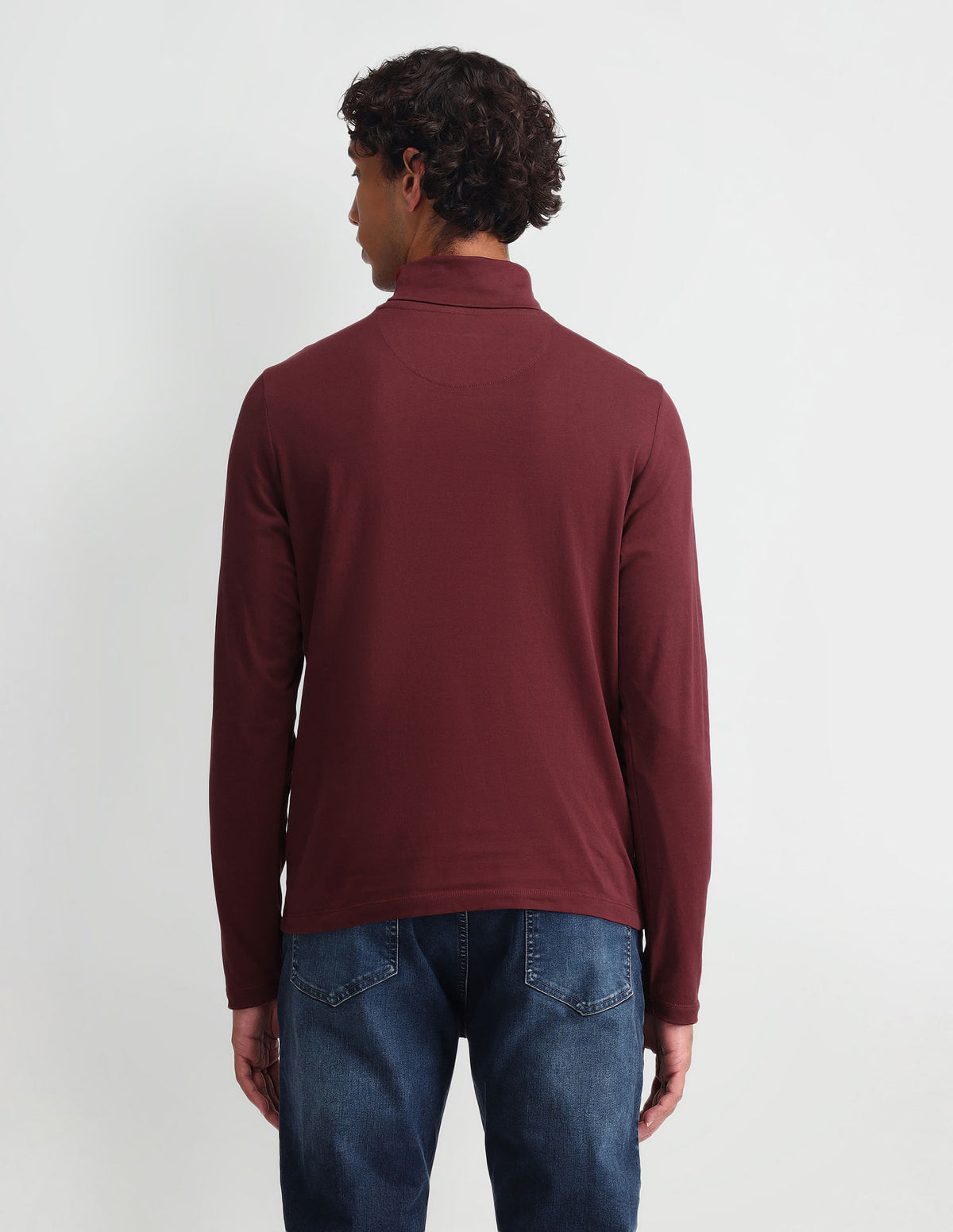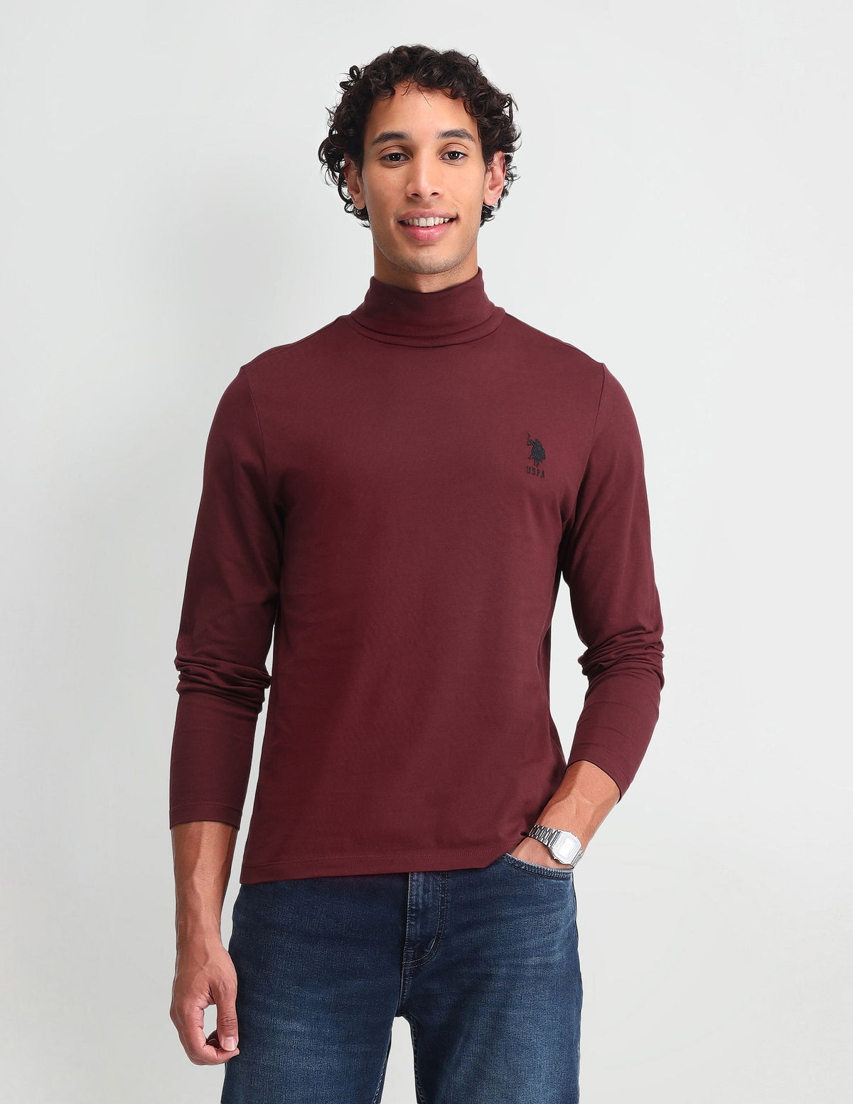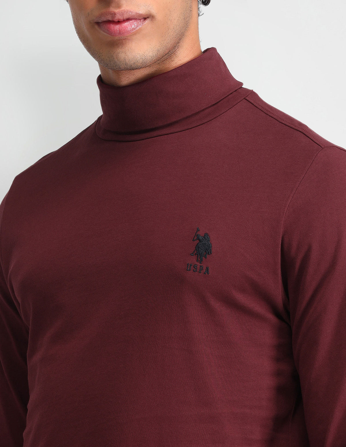 | Turtle neck | Embroidered logo at chest | Long sleeves | Straight hemline | Solid pattern | Knitted | Muscle fit |