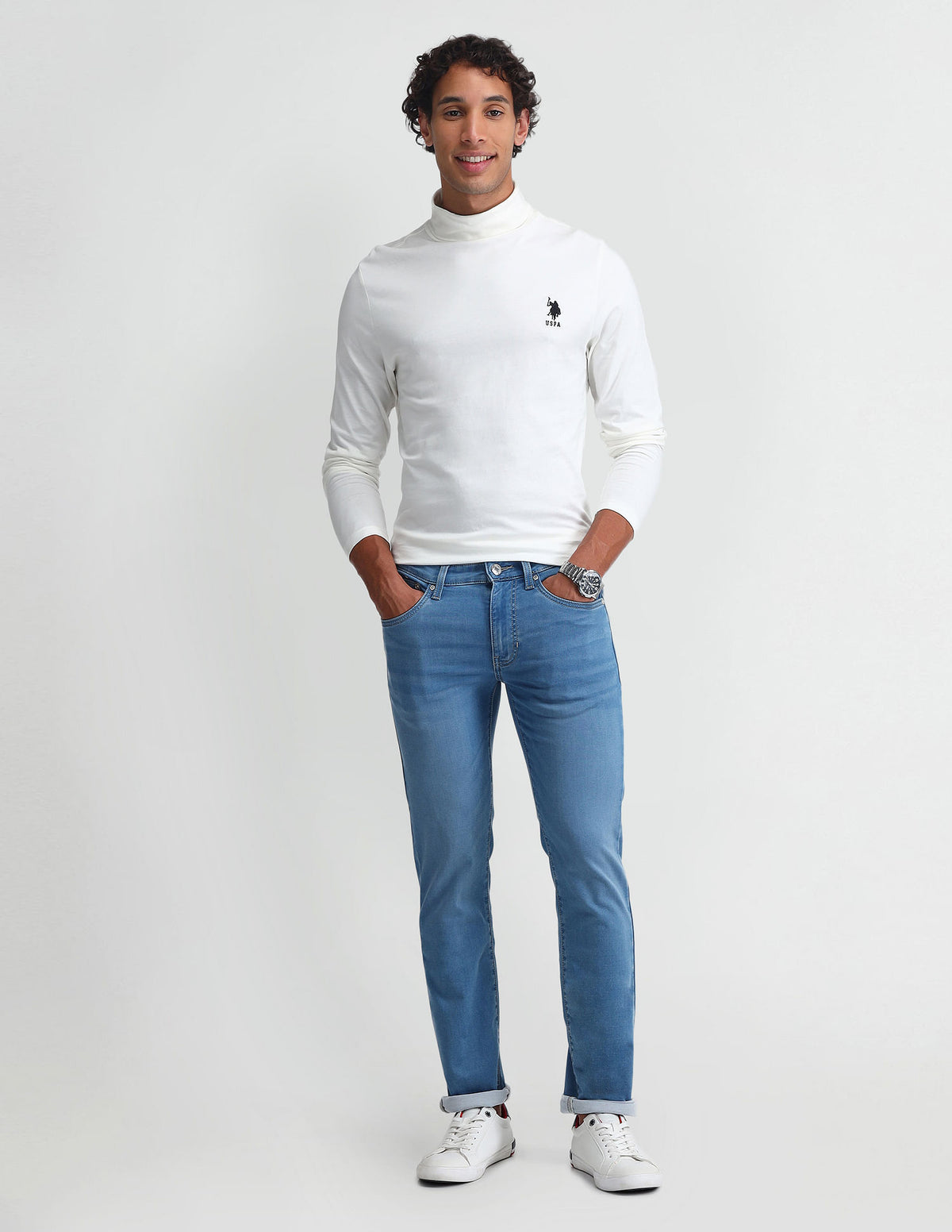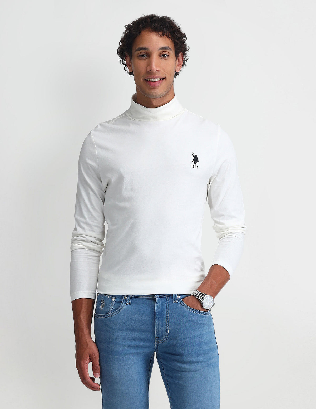 | Turtle neck | Embroidered logo at chest | Long sleeves | Straight hemline | Solid pattern | Knitted | Muscle fit |