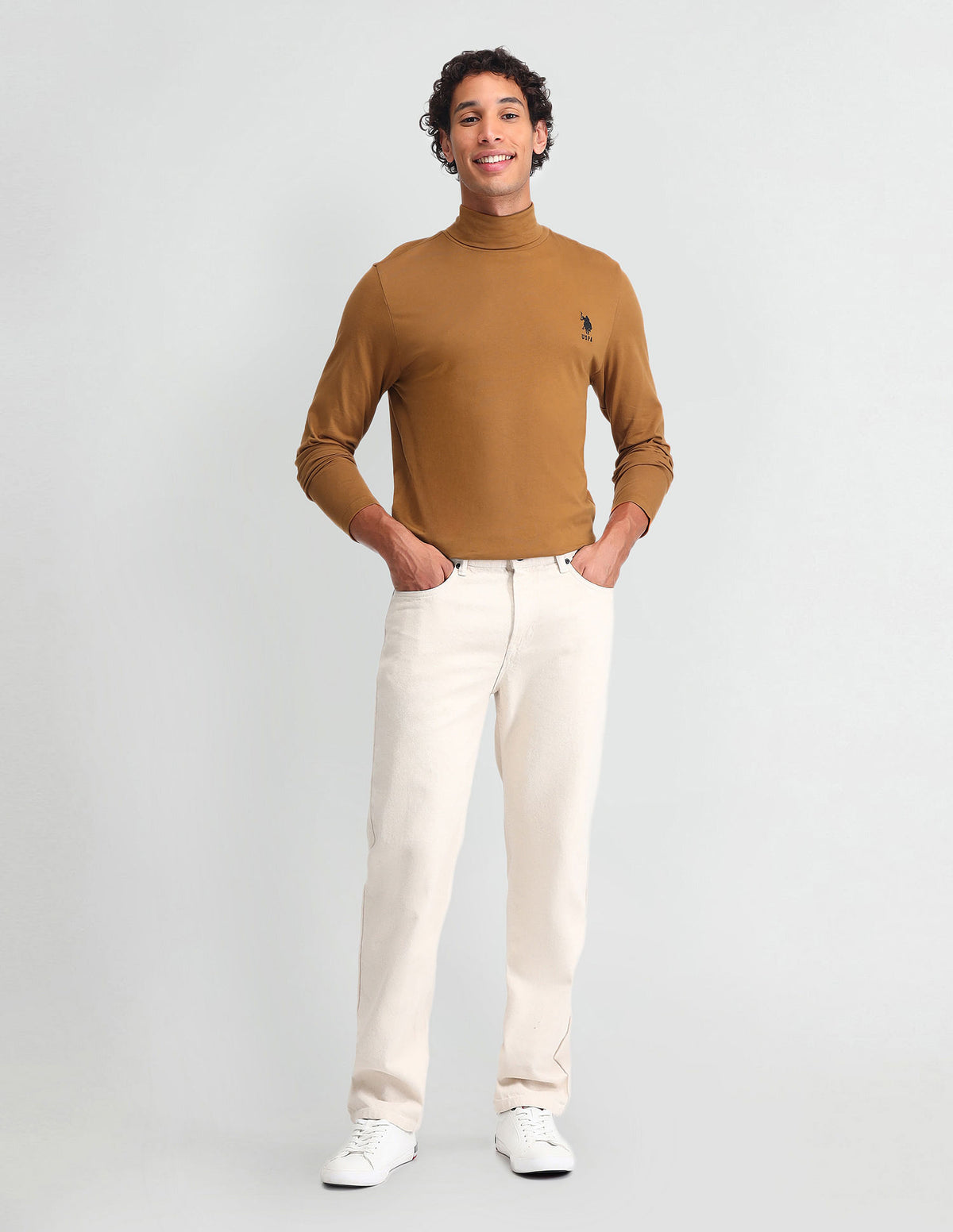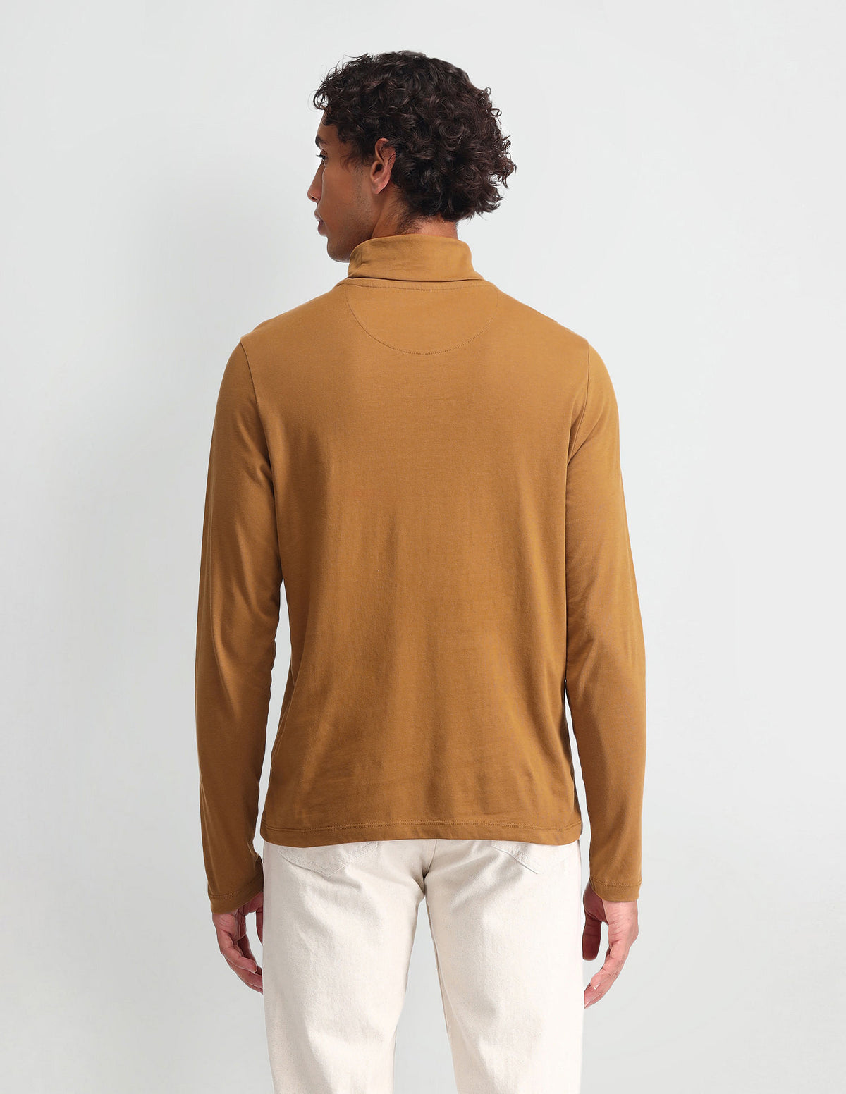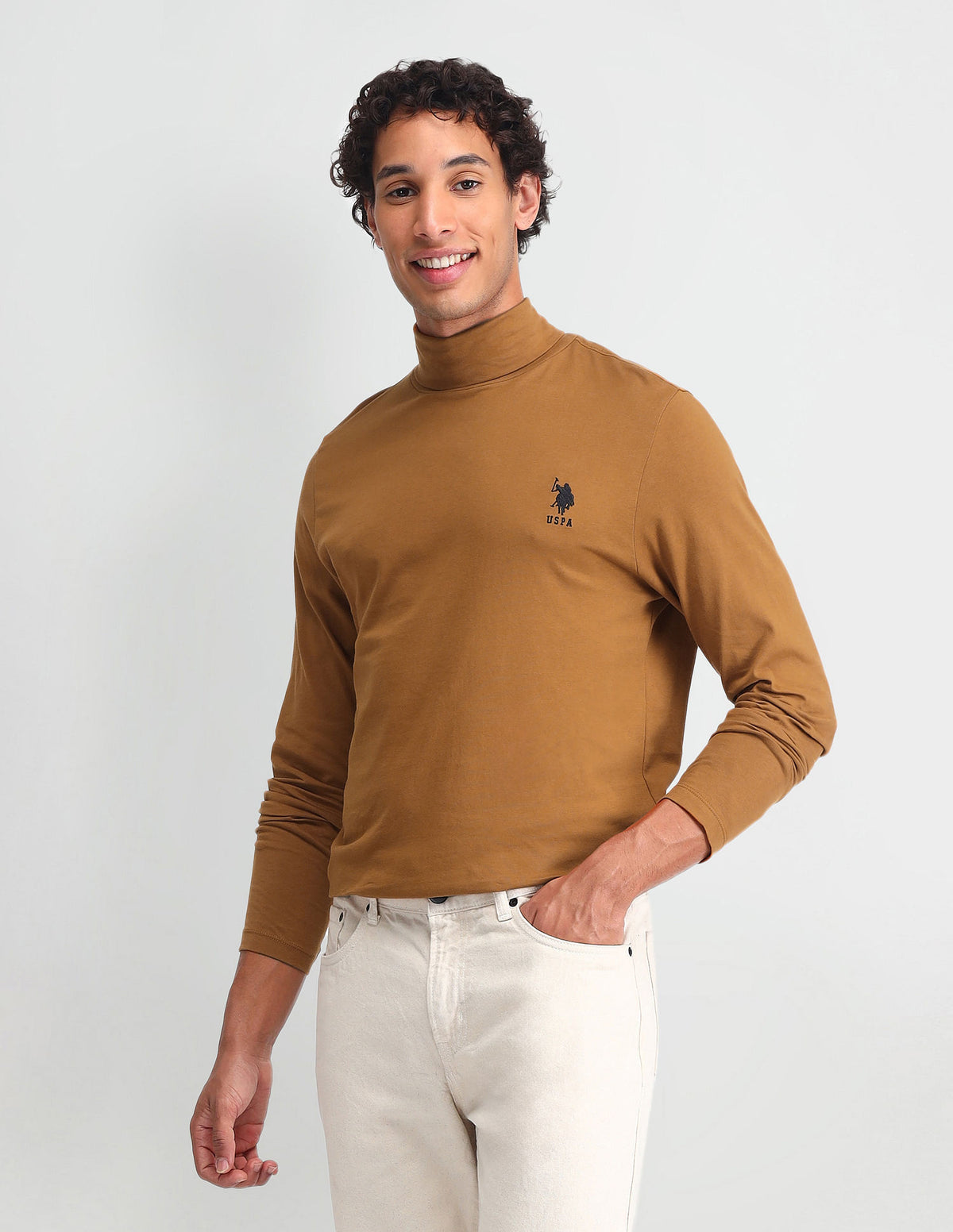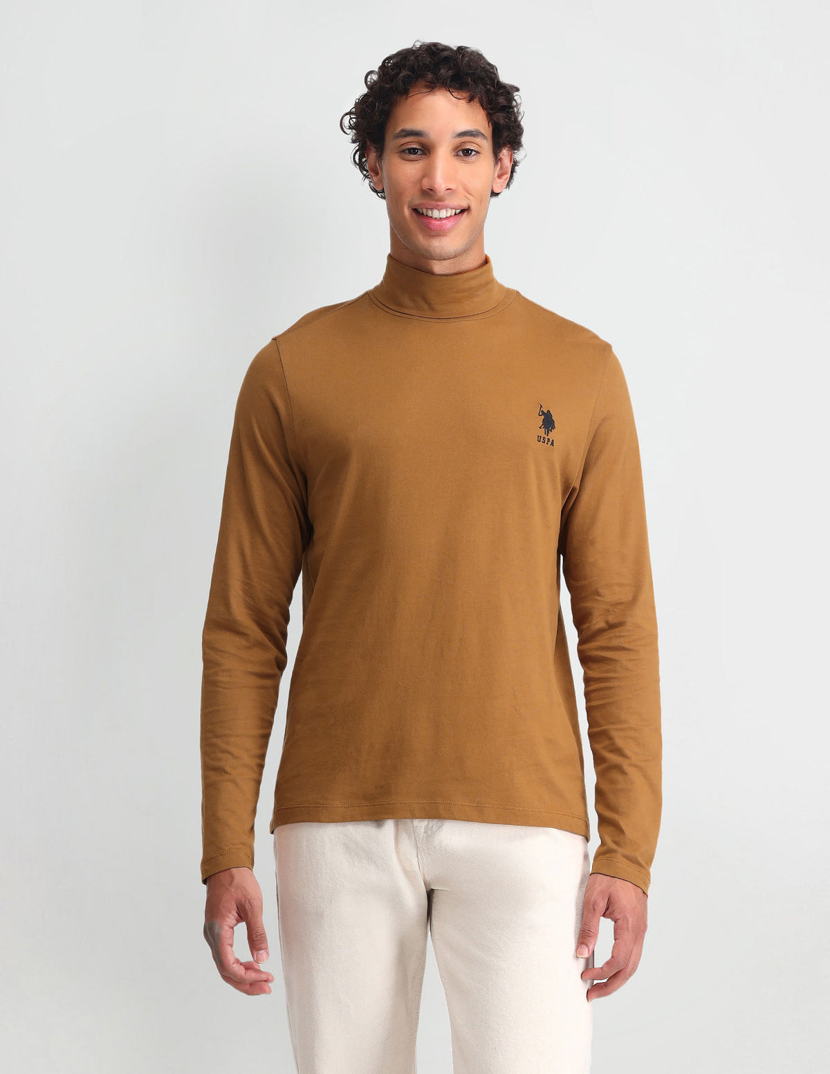 | Turtle neck | Embroidered logo at chest | Long sleeves | Straight hemline | Solid pattern | Knitted | Muscle fit |
