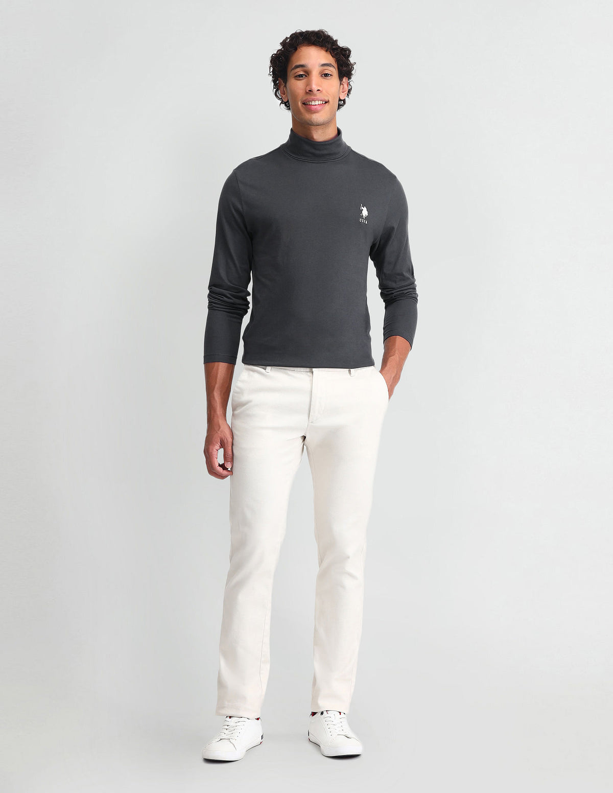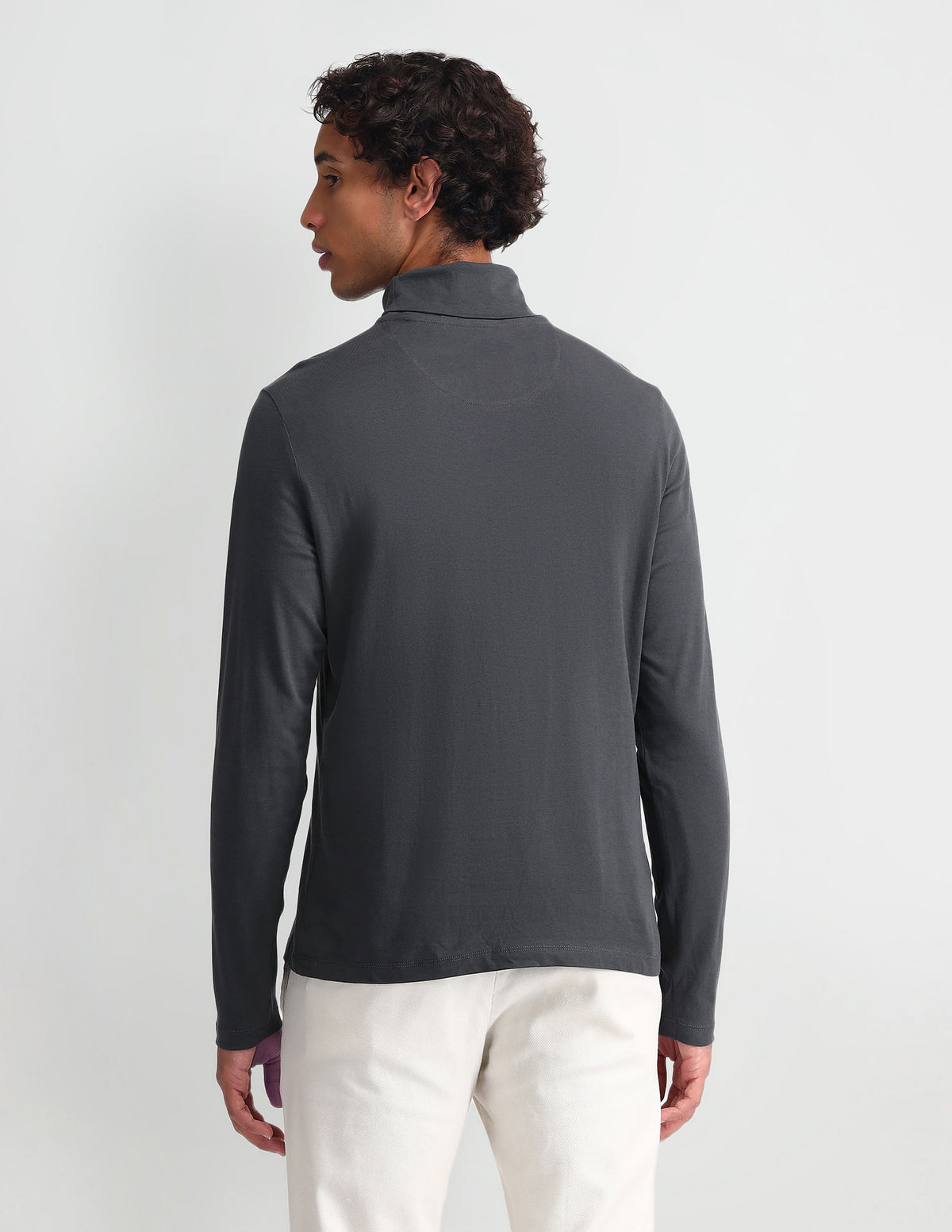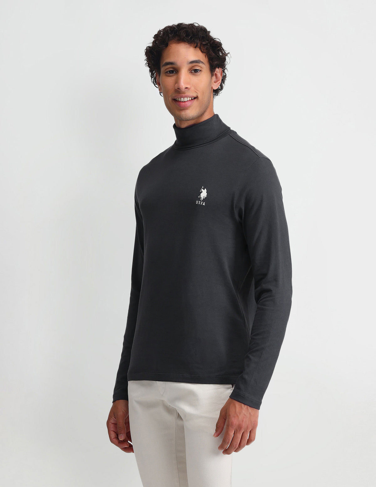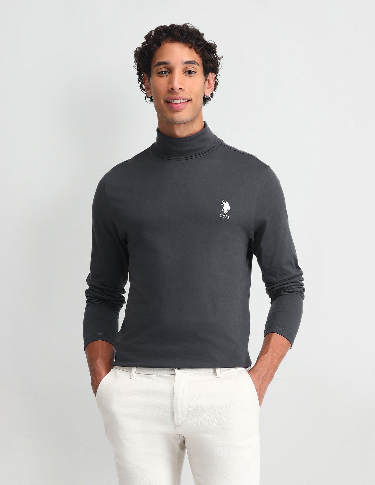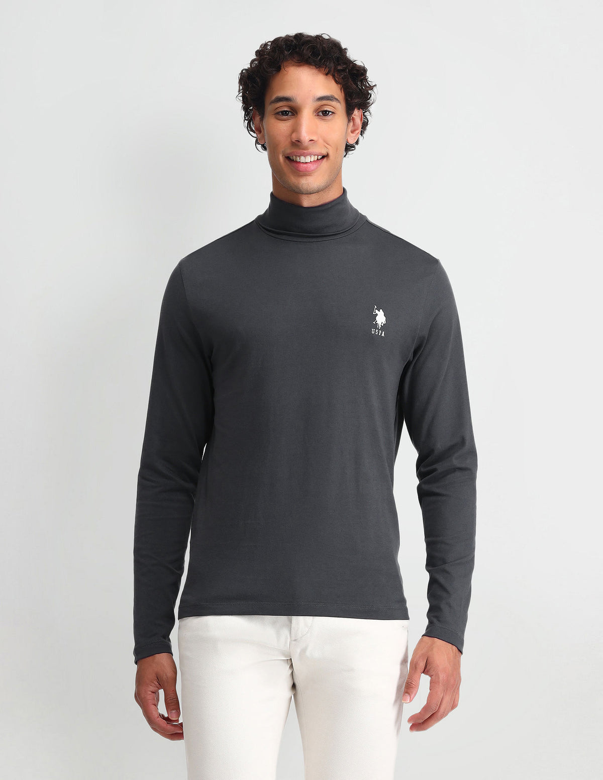 | Turtle neck | Embroidered logo at chest | Long sleeves | Straight hemline | Solid pattern | Knitted | Muscle fit |