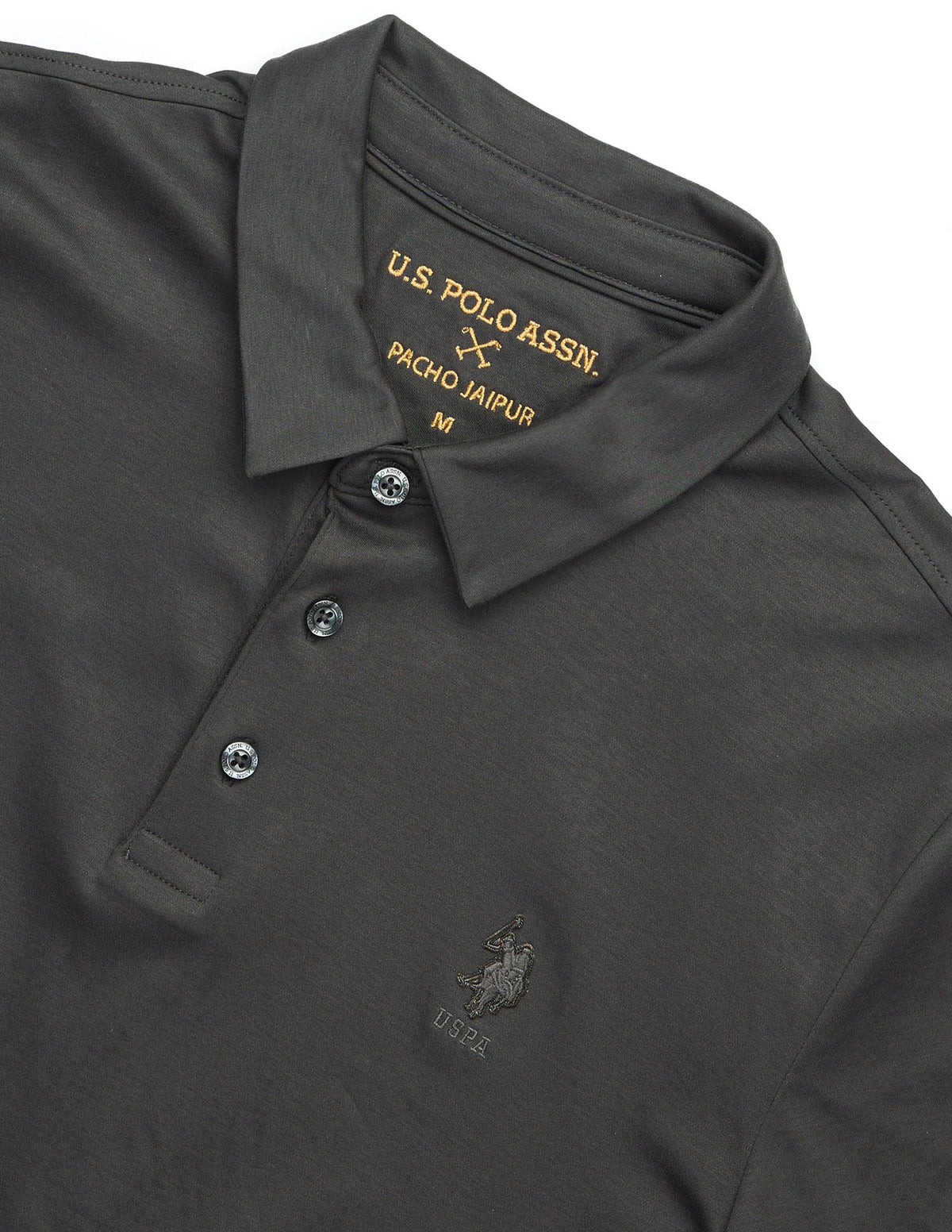 | Polo collar | Embroidered logo at chest | Short button placket | Short sleeves | Ribbed collar and sleeve hems | Vented hemline | Solid pattern | Knitted | Slim fit |