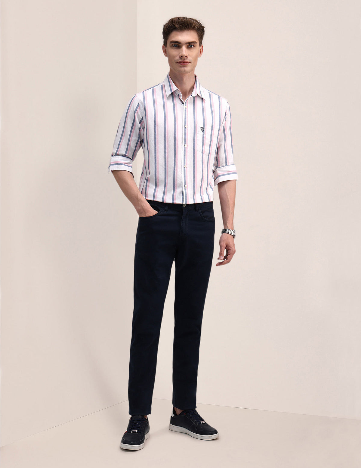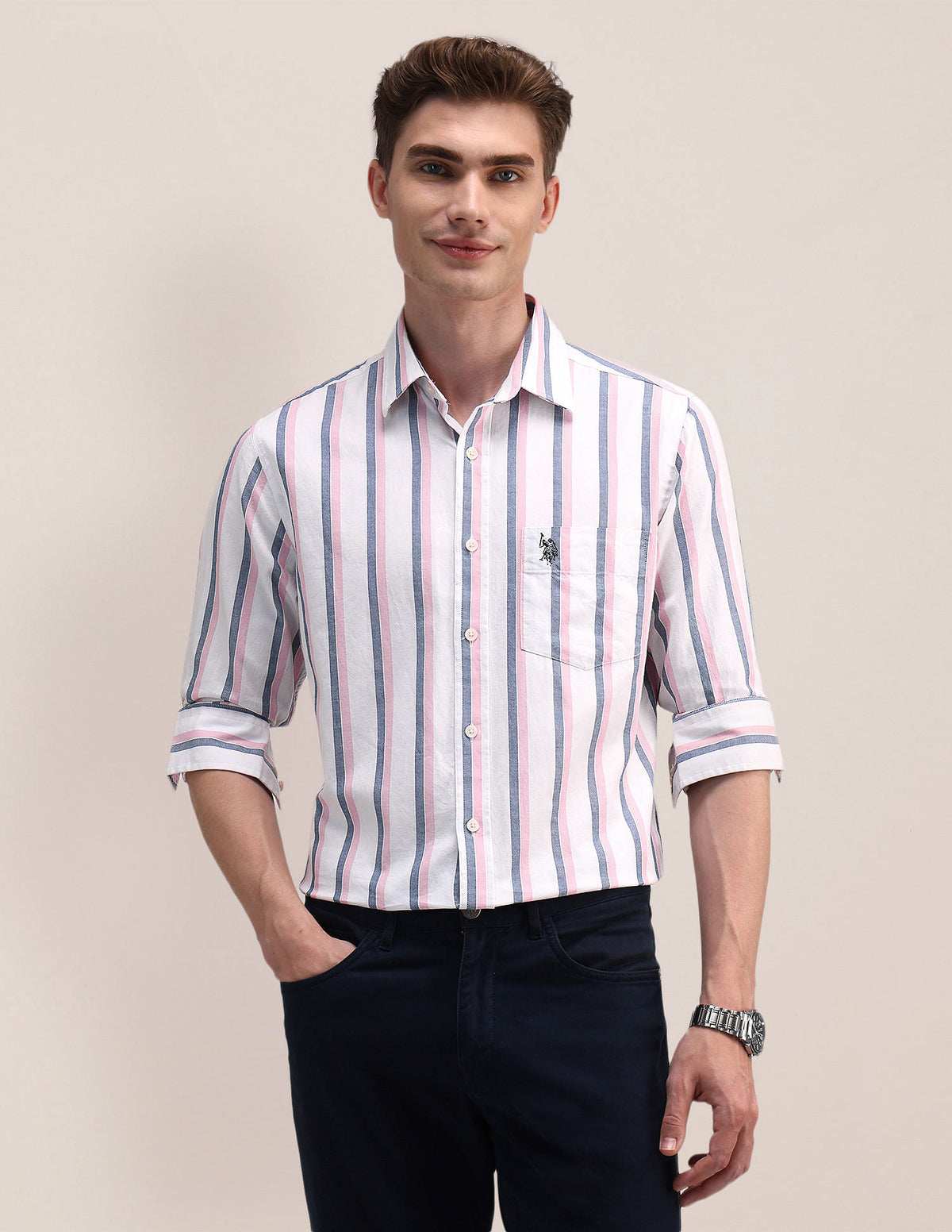 Story: Vertical striped pattern semi-cutaway collar casual shirts for men reassures modern appeal with a classic touch, ensuring you can easily impress on any day.