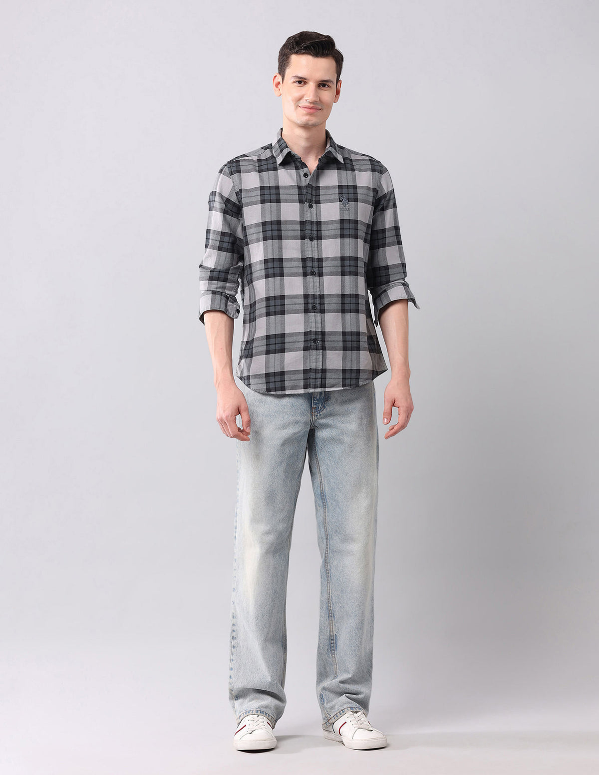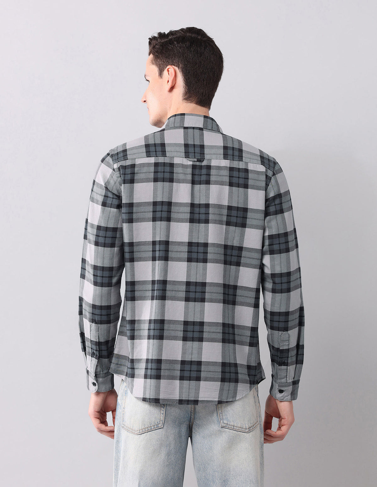 | Spread collar | Logo at chest | Full button placket | Long sleeves with rounded cuffs | Curved hemline | Tartan checked pattern | Twill weave | Regular fit |