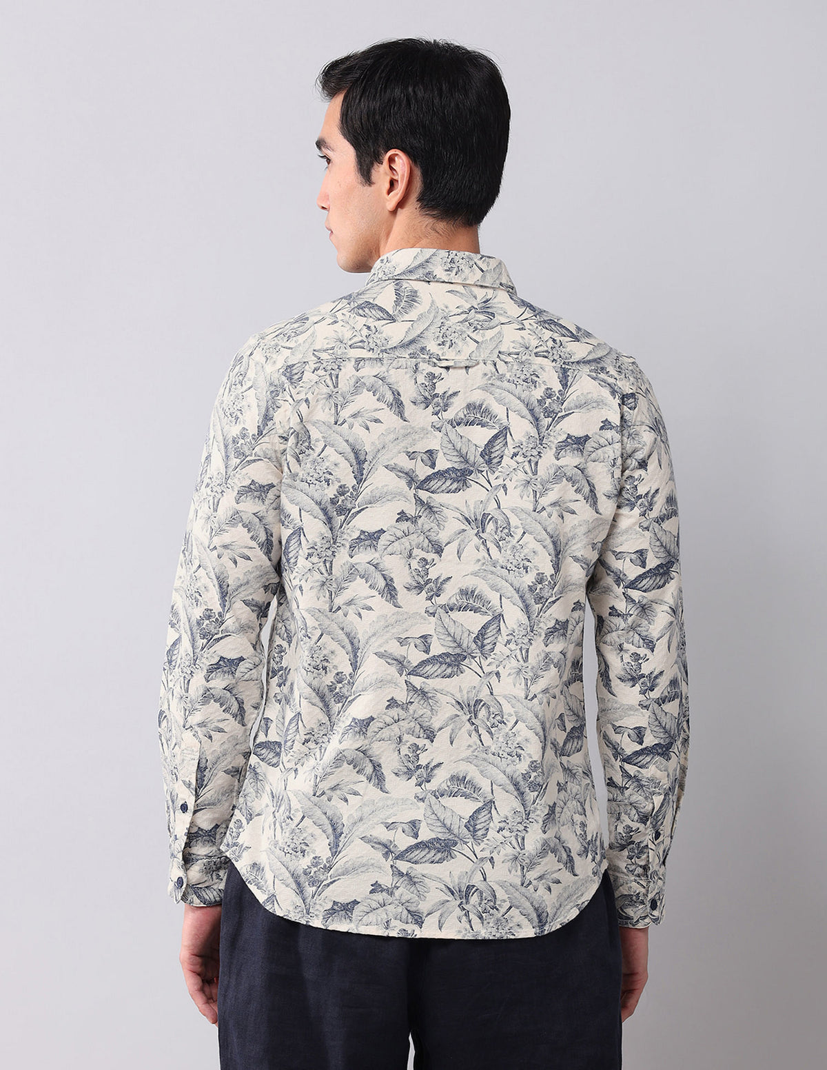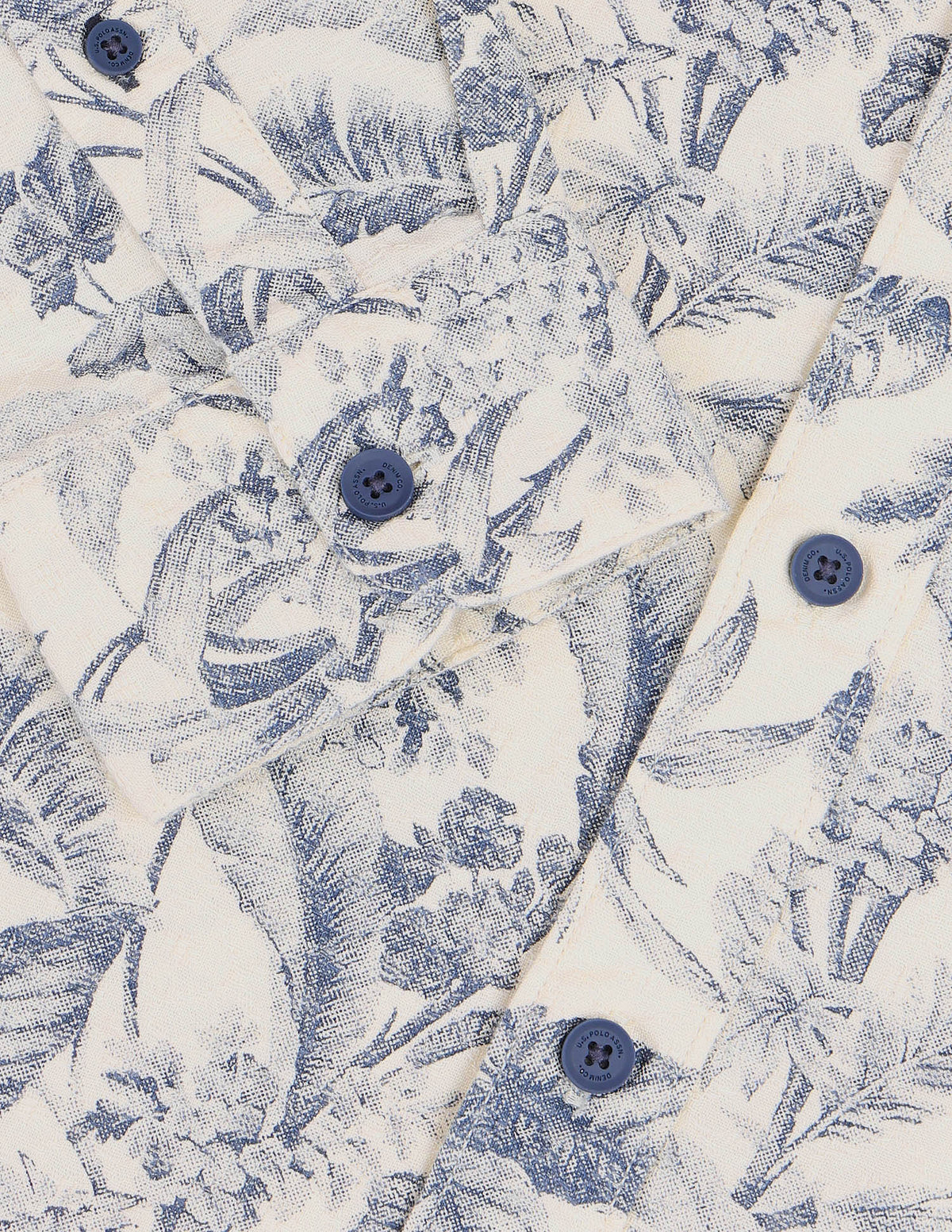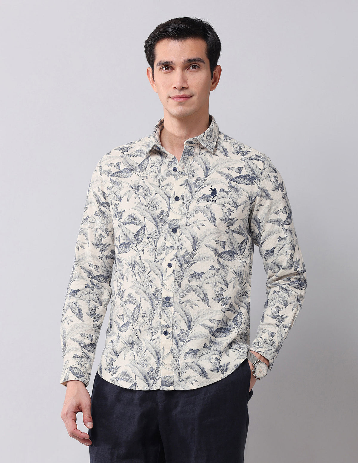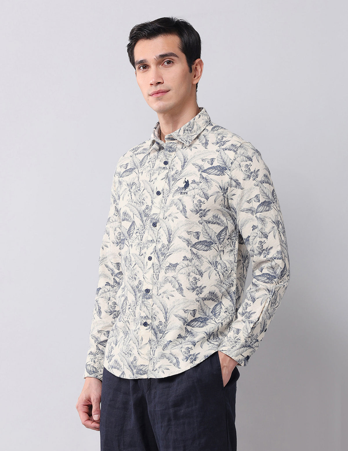| Spread collar | Logo at chest | Full button placket | Long sleeves with rounded cuffs | Curved hemline | Floral printed pattern | Dobby weave | Regular fit |