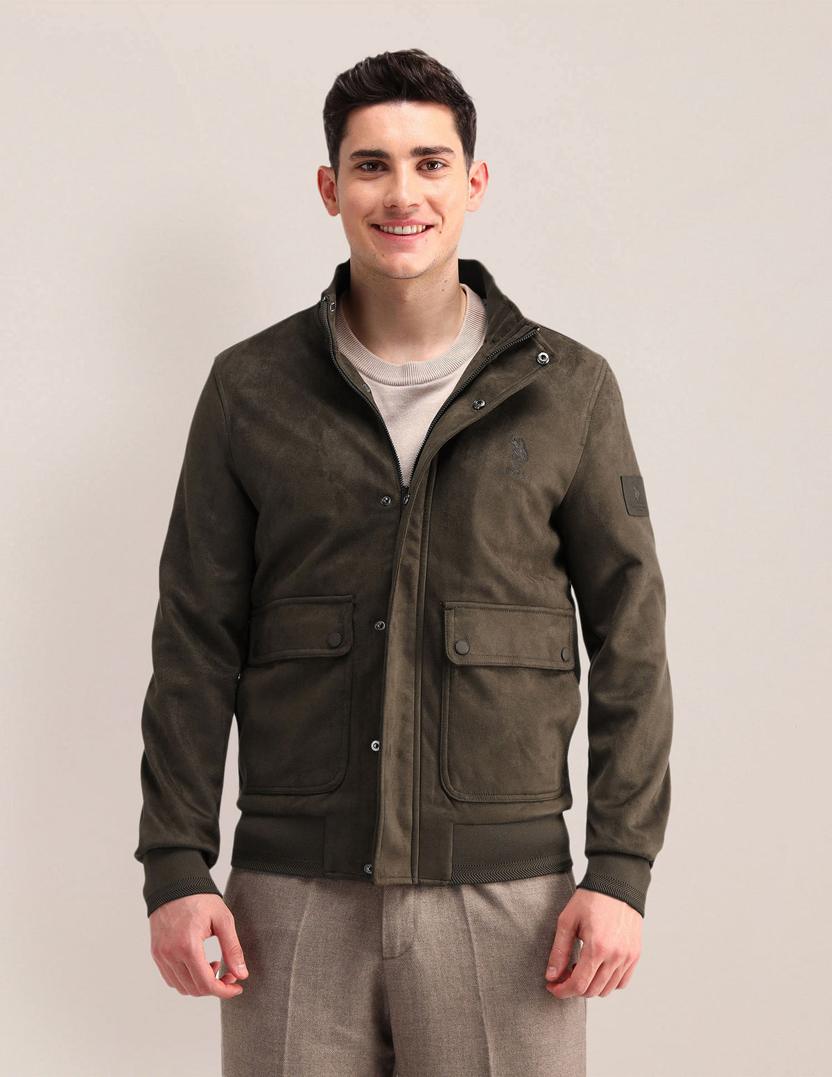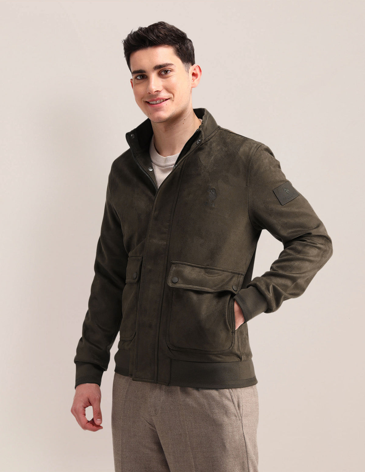 | Stand collar | Full zip placket | Two pockets | Long sleeves | Solid pattern | Regular fit |