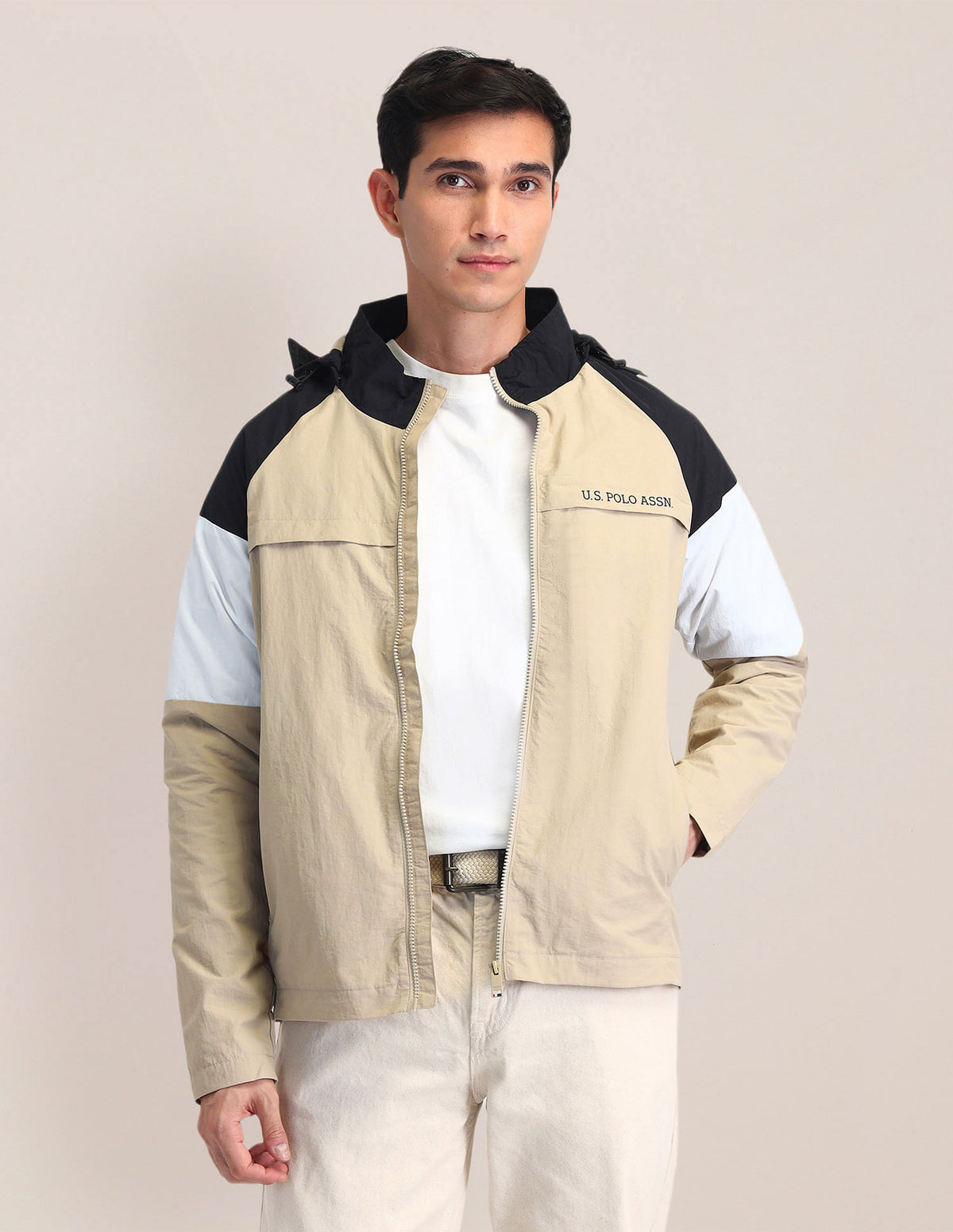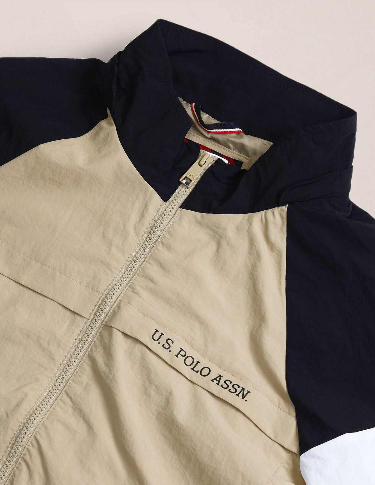 | Stand neck | Full zipper closure | Long sleeves | Logo at left sleeve | Elasticized sleeve hems and hemline | Two pockets | Solid pattern | Regular fit | Country Of Origin - India