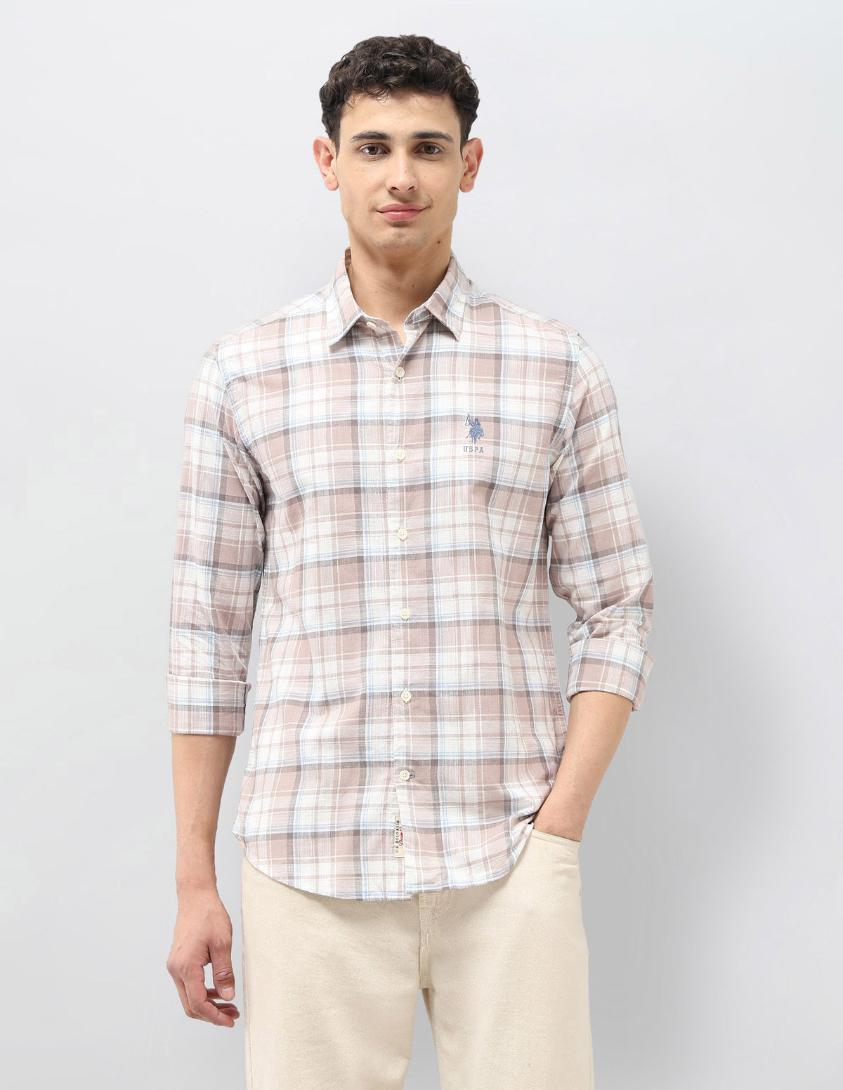 Story: Men's checks pattern shirt featuring comfortable wear, classic versatility, and effortless style perfectly suited for casual outings and stylish everyday moments throughout seasons.