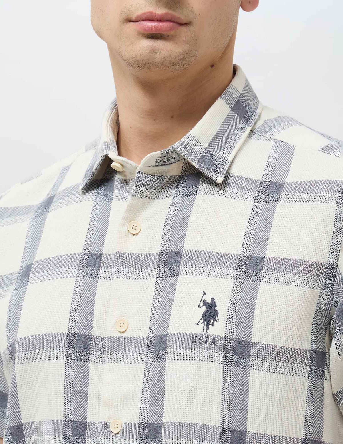 Story: This men's shirt features a timeless checked design, providing classic style and comfortable wear ideal for casual occasions and leisurely weekend outings with enduring versatility.