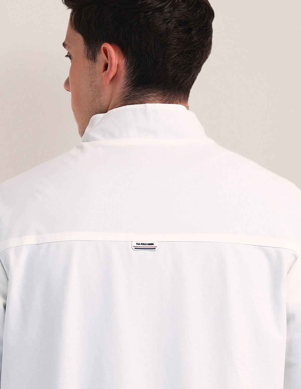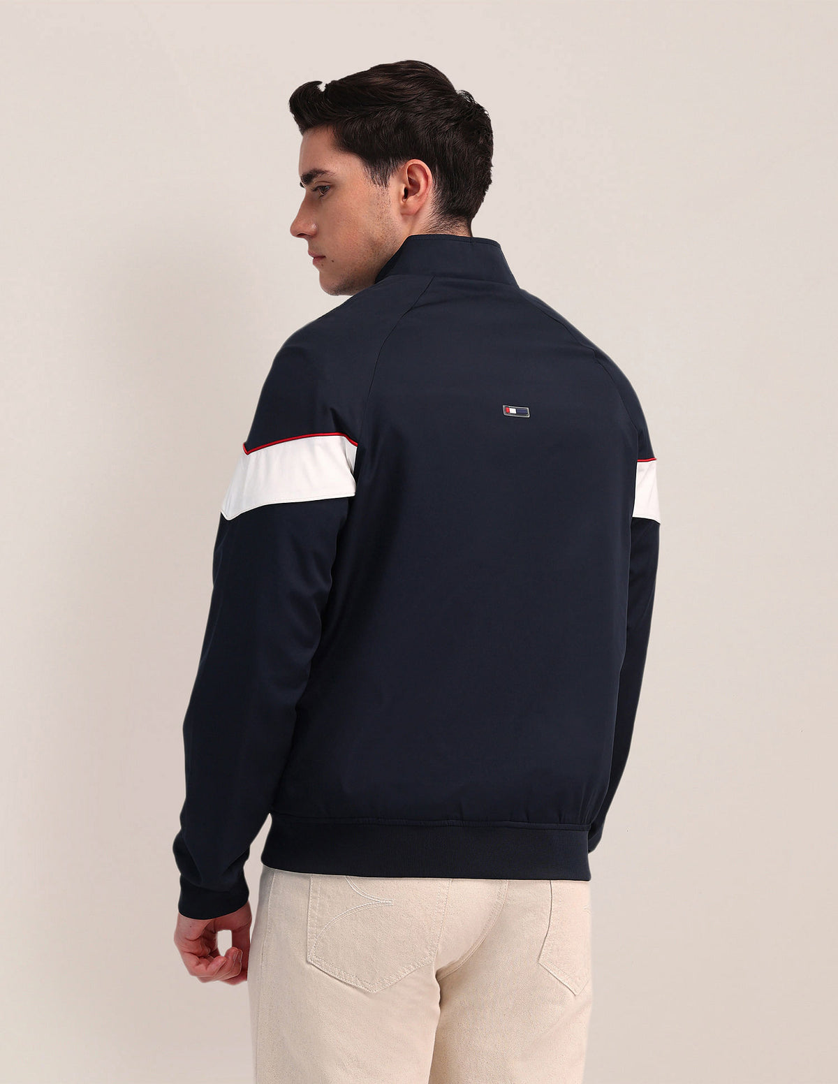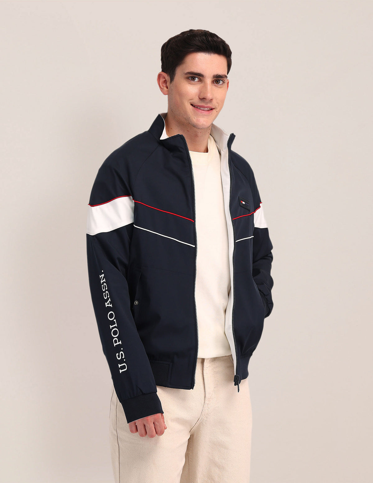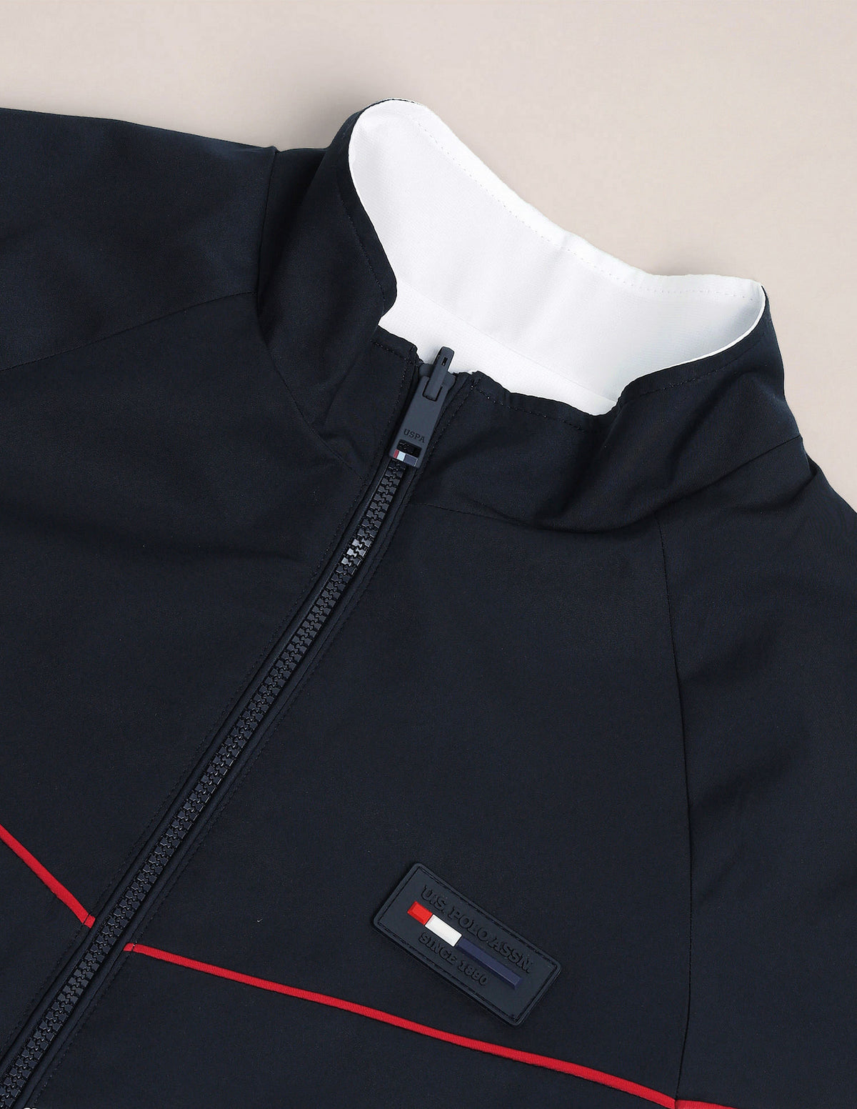 | High neck | Logo at chest | Full zipper closure | Long sleeves | Two pockets | Solid pattern | Regular fit |