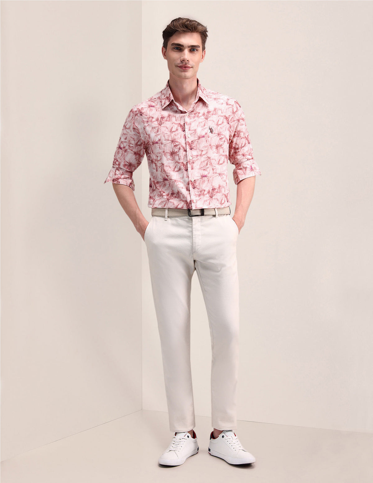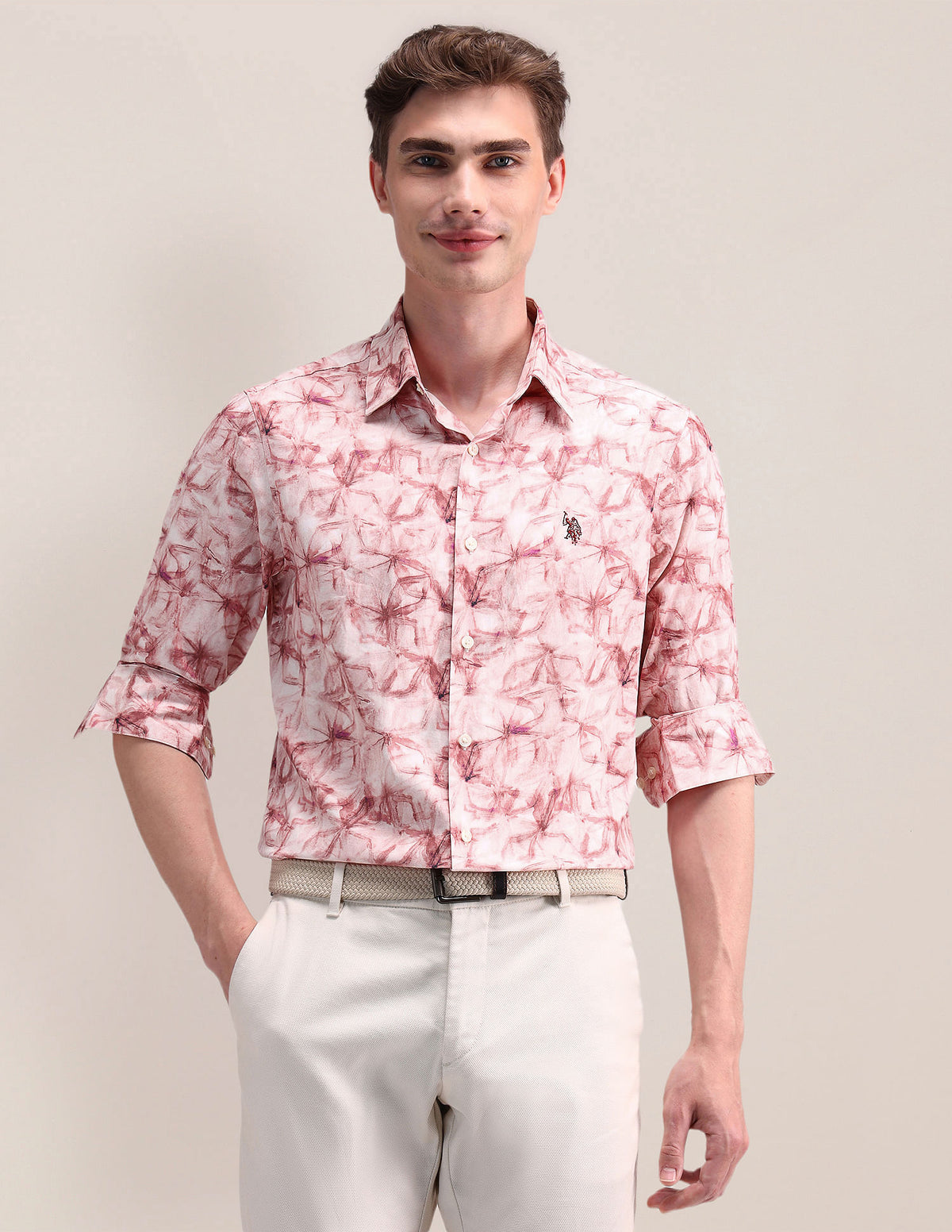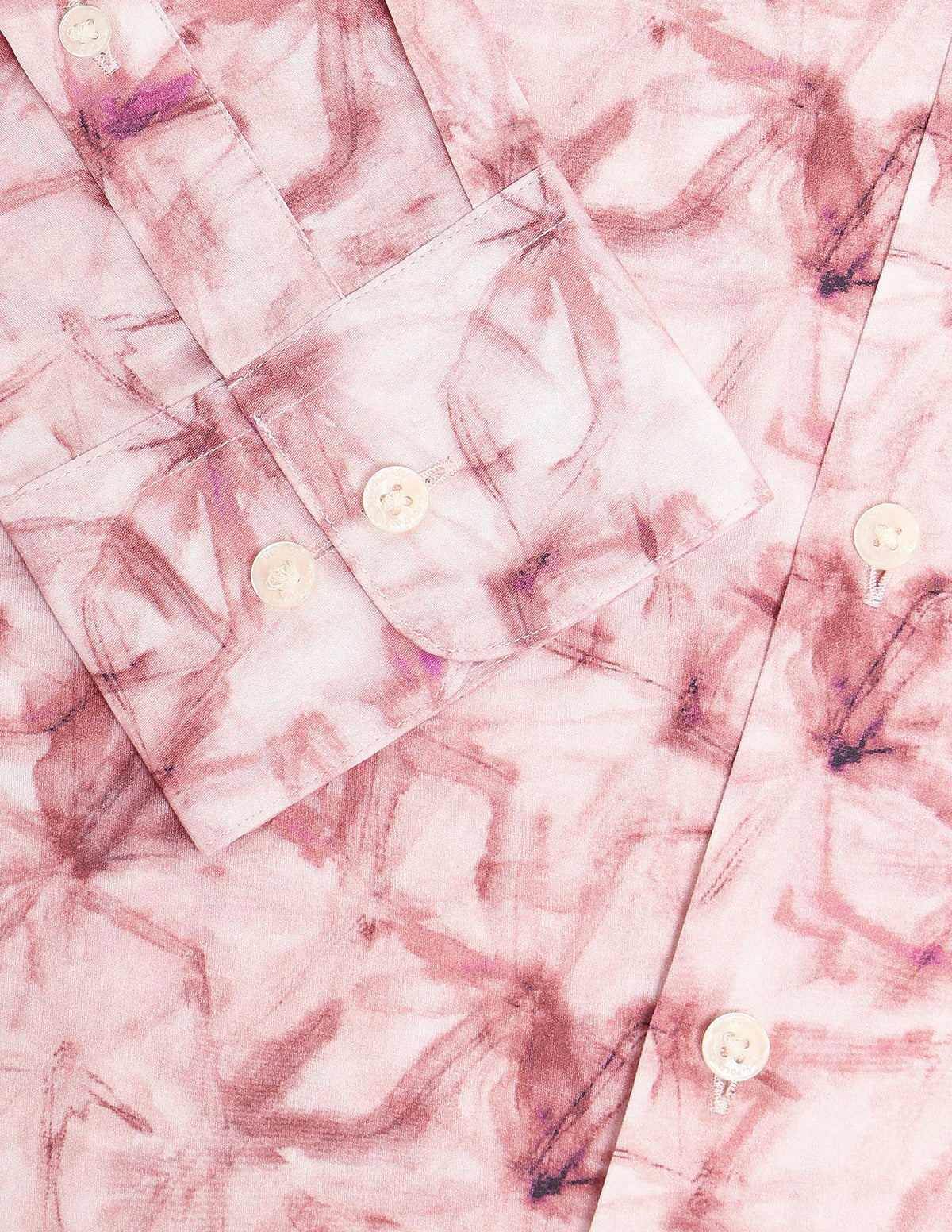 | Semi-cutaway collar | Logo at chest | French button placket | Long sleeves with rounded cuffs | Curved hemline | All-over printed pattern | Satin weave | Brand fit: Tailored fit | Fit mapping: Regular fit