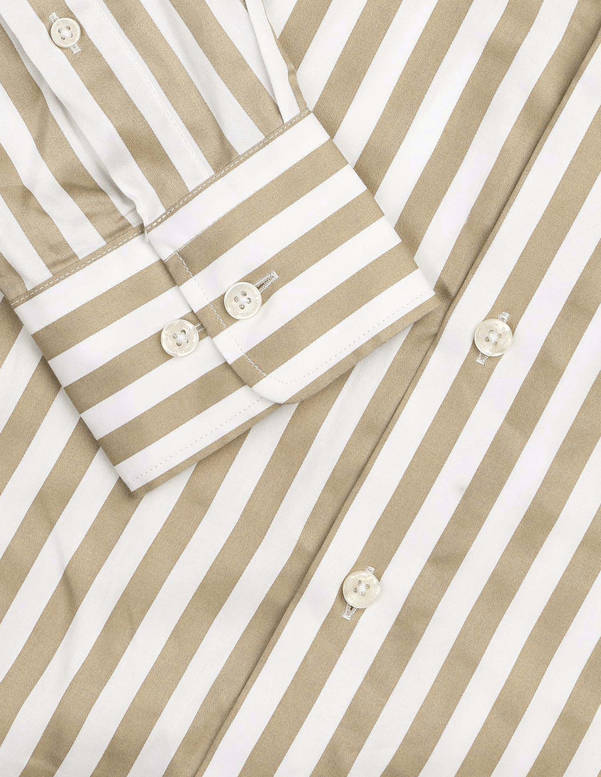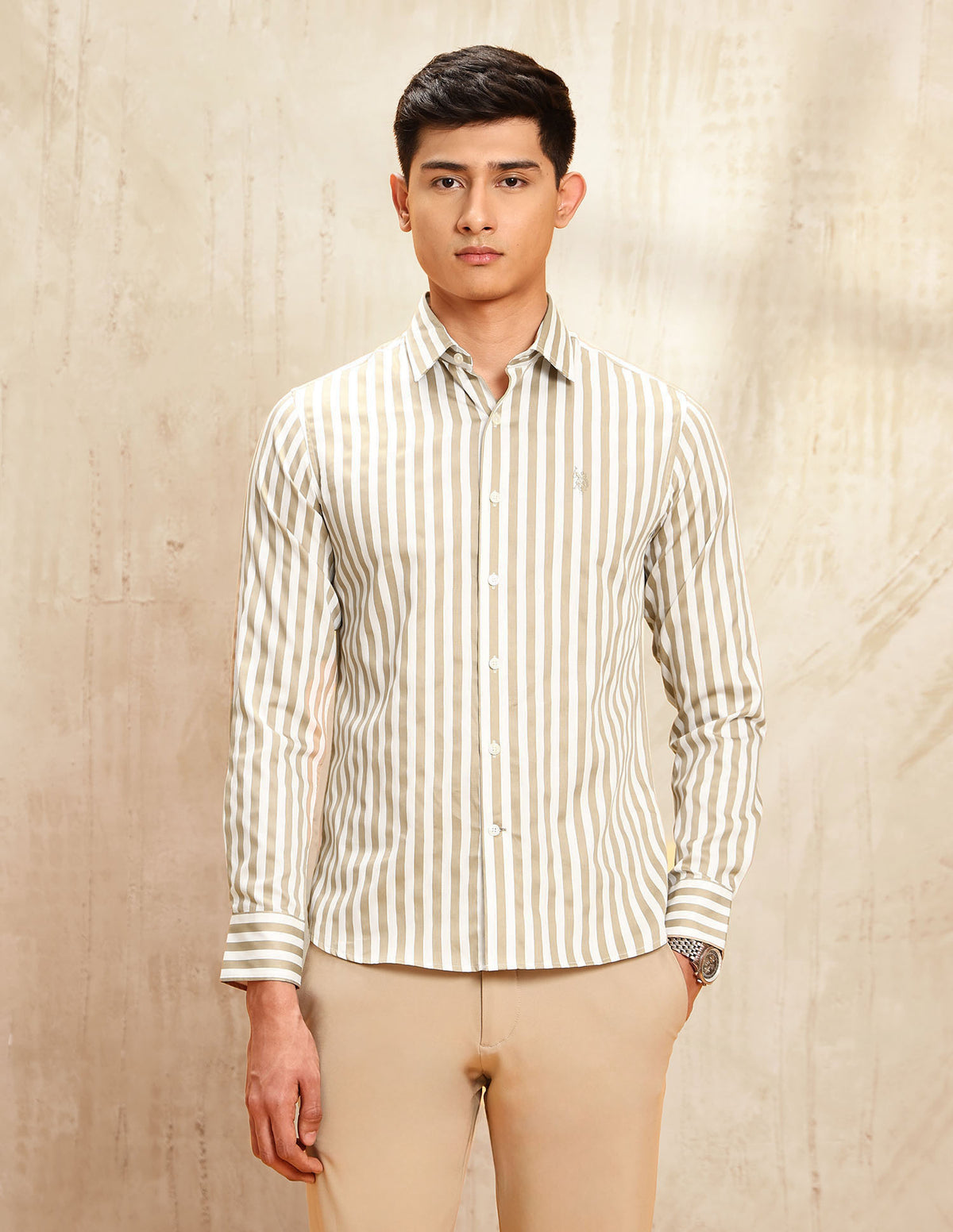 Story: Men's vertical-striped shirt for casual occasions, offering a stylish and relaxed look.