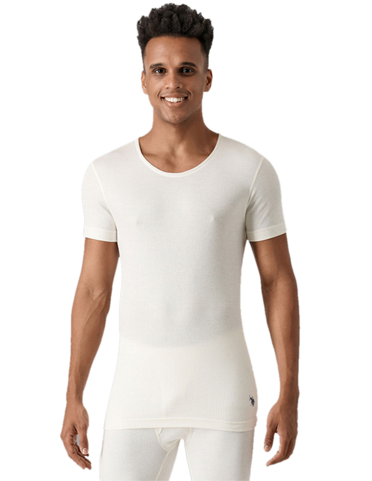 | Pack of 1: | Scoop neck | Logo at chest | Short sleeves | Solid pattern | Slim fit | Knitted |