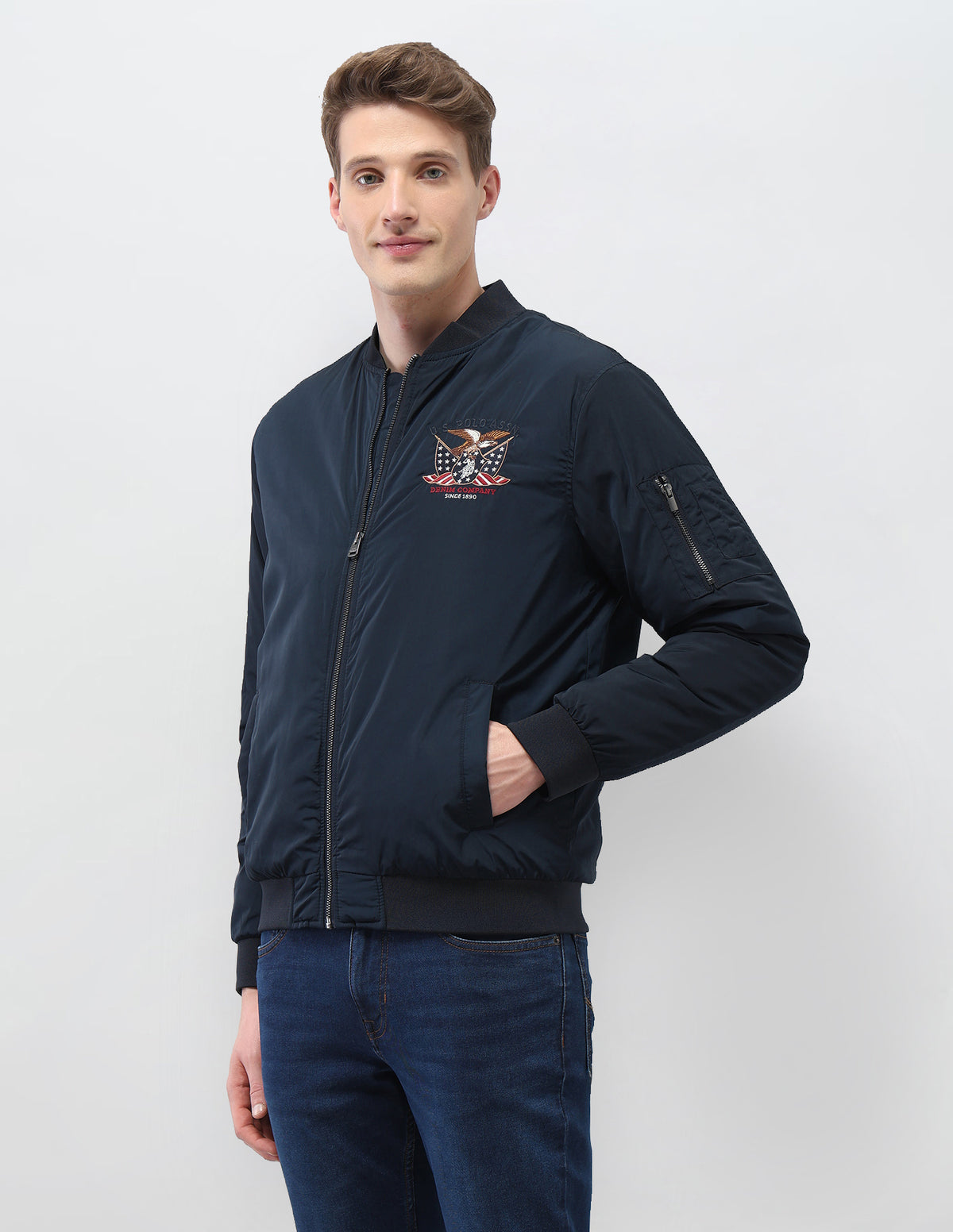 Solid Regular Fit Bomber Jacket