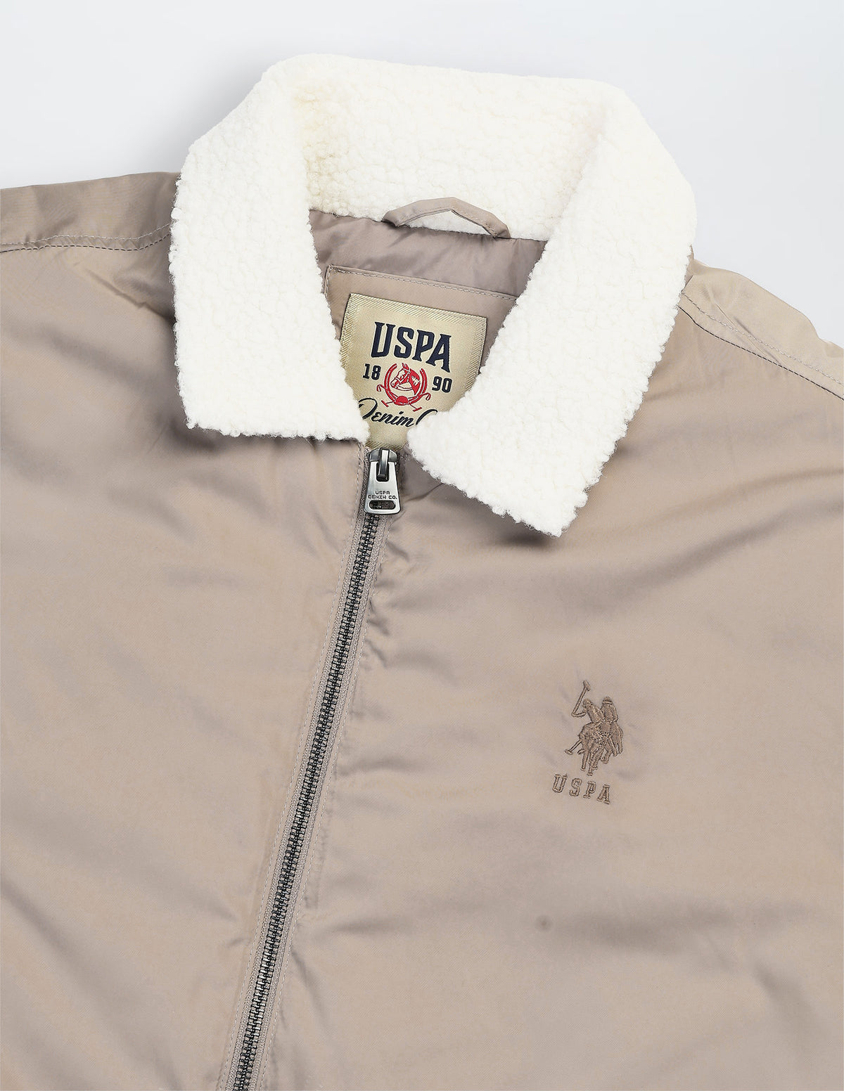 - Three-pocket styling featuring two side flap pockets and one zip pocket at sleeve