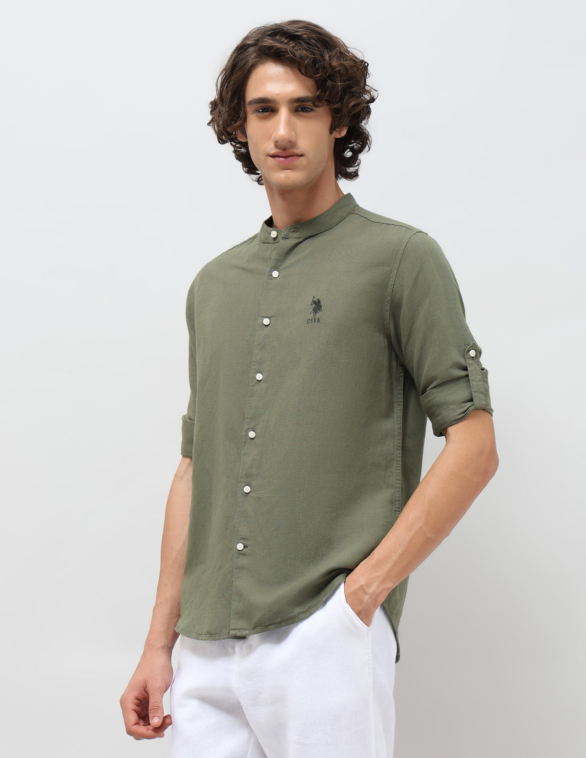 Story: A wardrobe essential, this men's solid casual shirt offers versatility and timeless appeal for your everyday fashion needs.
