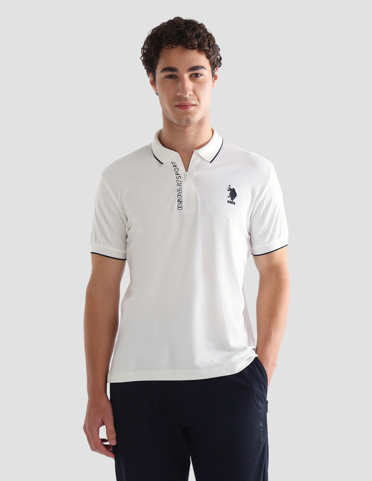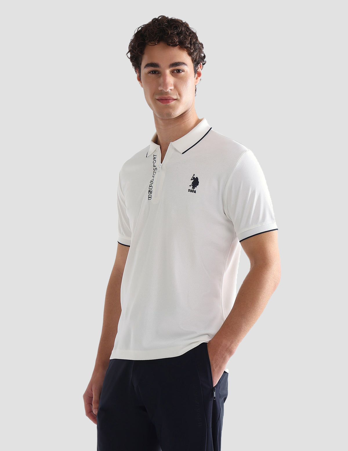 Story: Designed for athletic pursuits, this solid half-sleeve polo offers men performance-ready comfort with a clean, sporty aesthetic throughout active days.