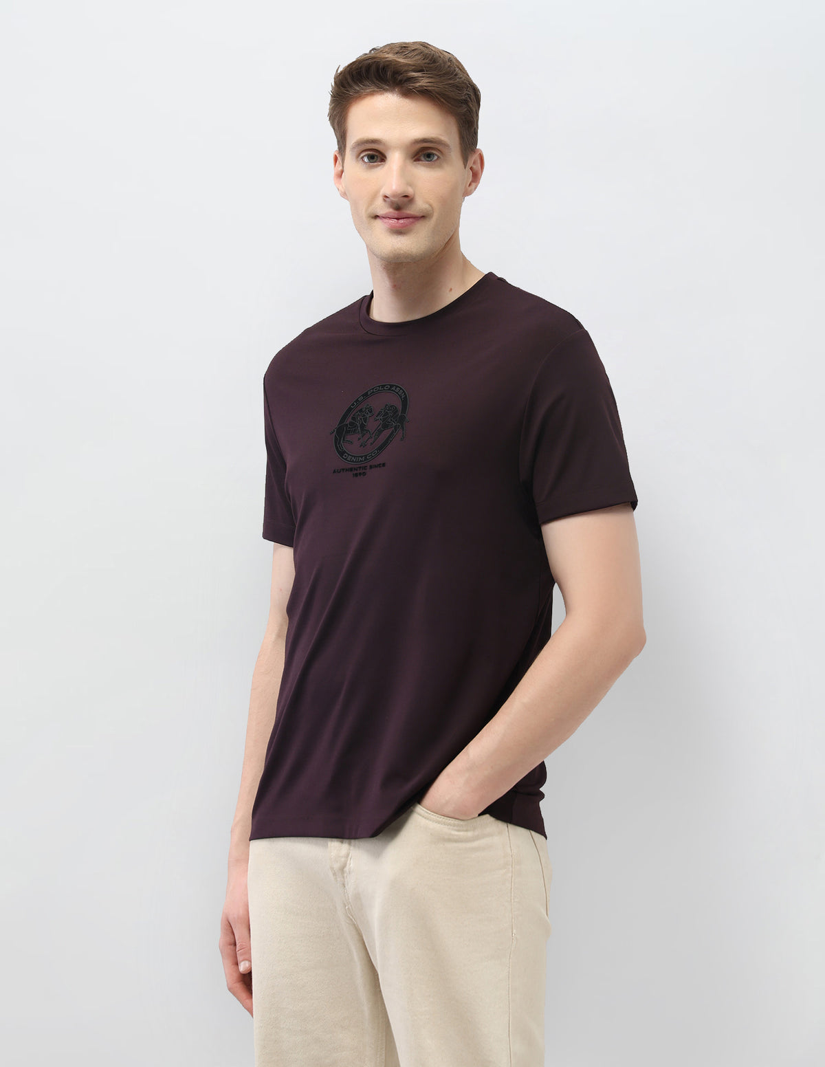 - Solid with embossed logo detail at chest