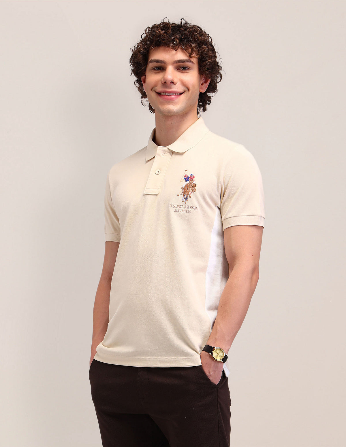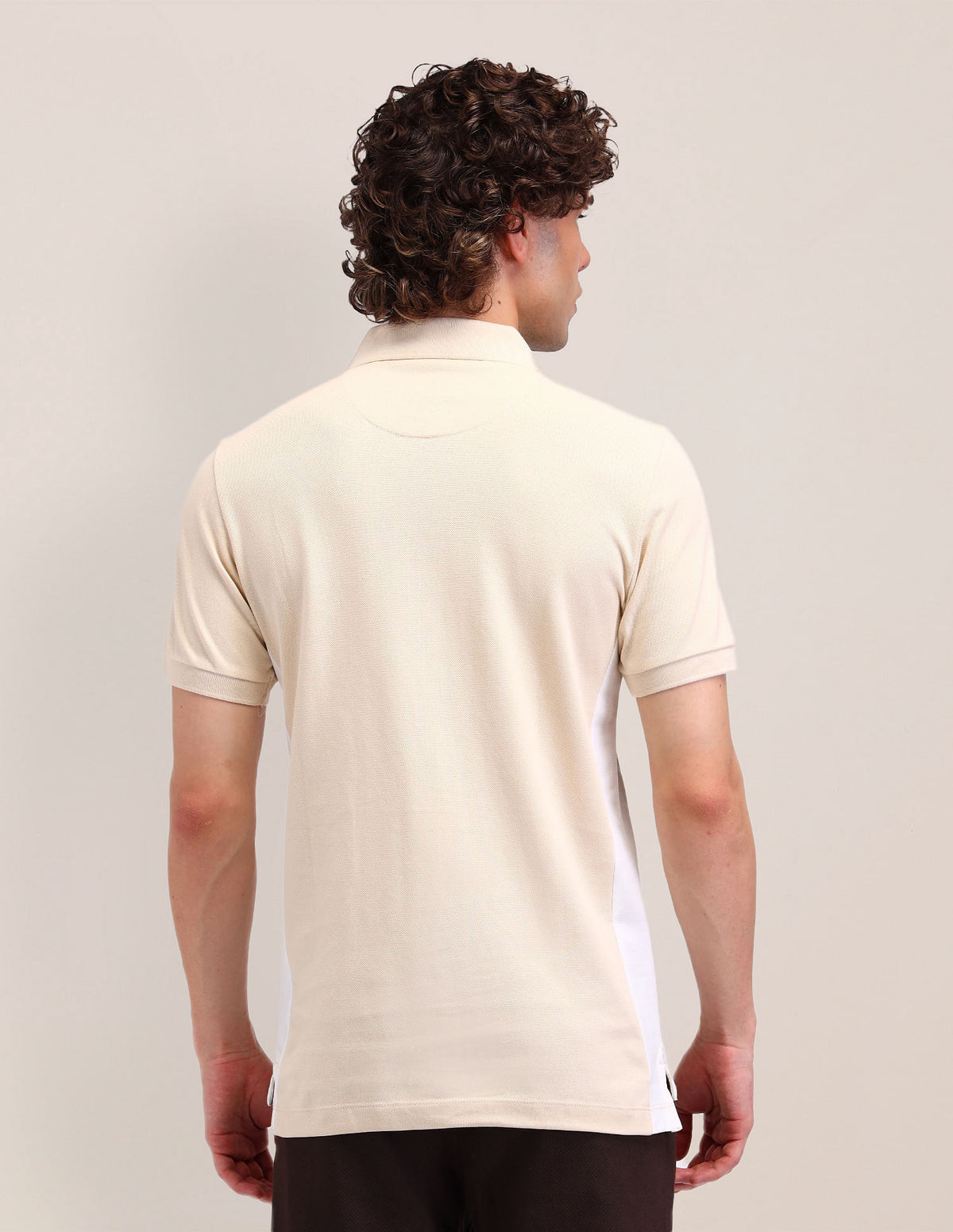 | Polo collar | Short button placket | Short sleeves | Ribbed collar and sleeve hems | Uneven vented hem | Solid pattern | Knitted | Slim fit |