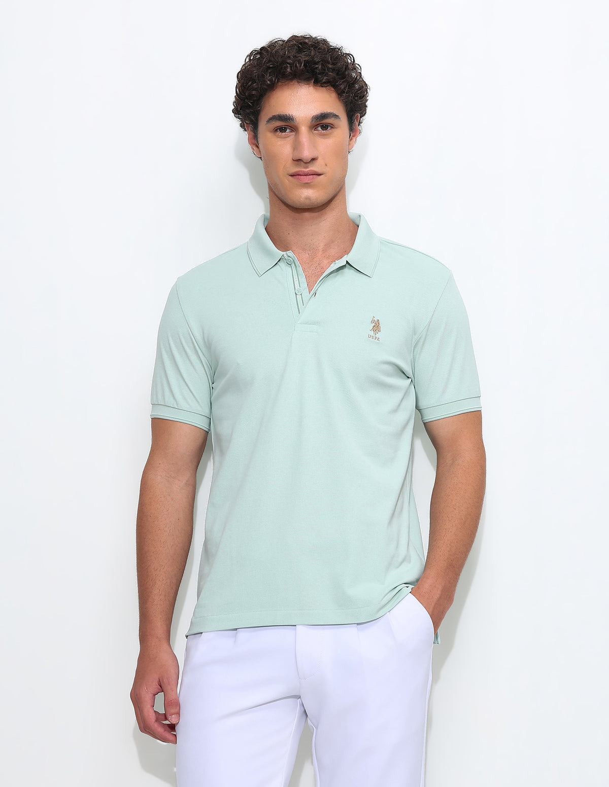 Story: This men's solid T-shirt from the White Harbour collection features half sleeve polo styling, delivering relaxed comfort perfect for casual everyday occasions.