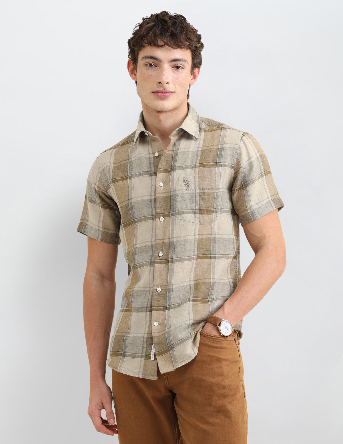 Story: Crafted with linen cotton, this checked men's shirt from the Sotogrande collection offers breathable comfort and classic casual appeal for relaxed wear.