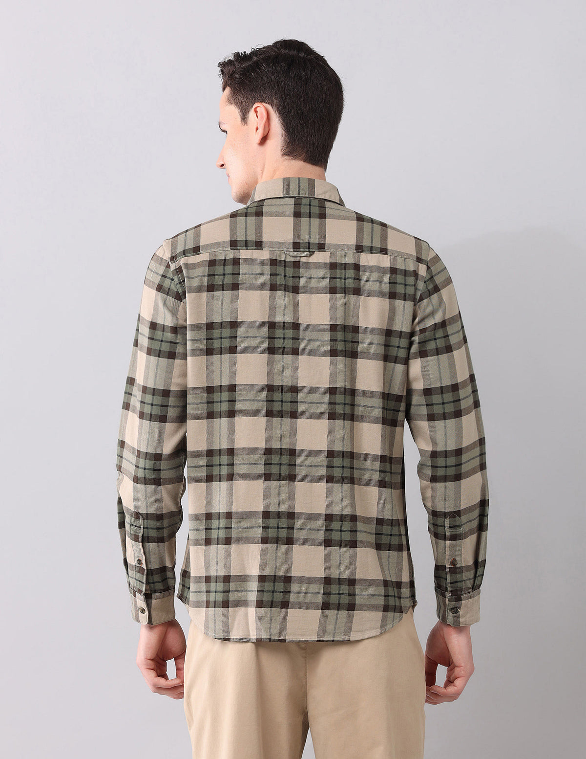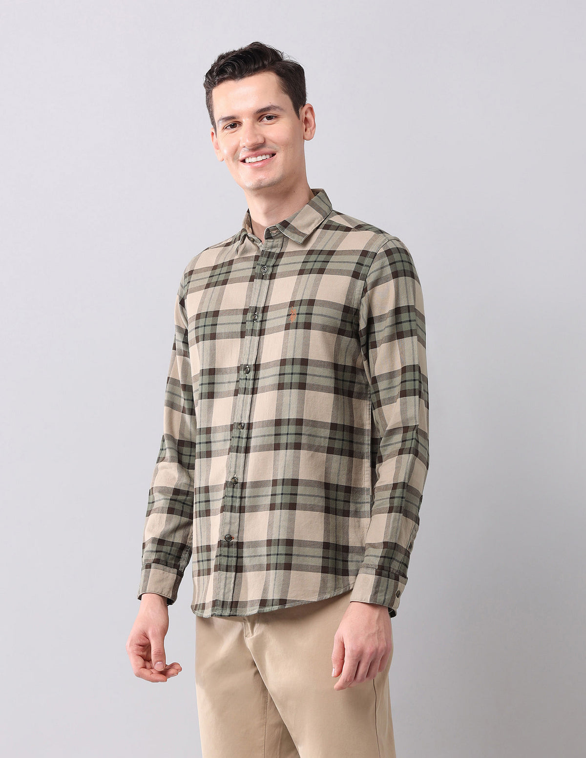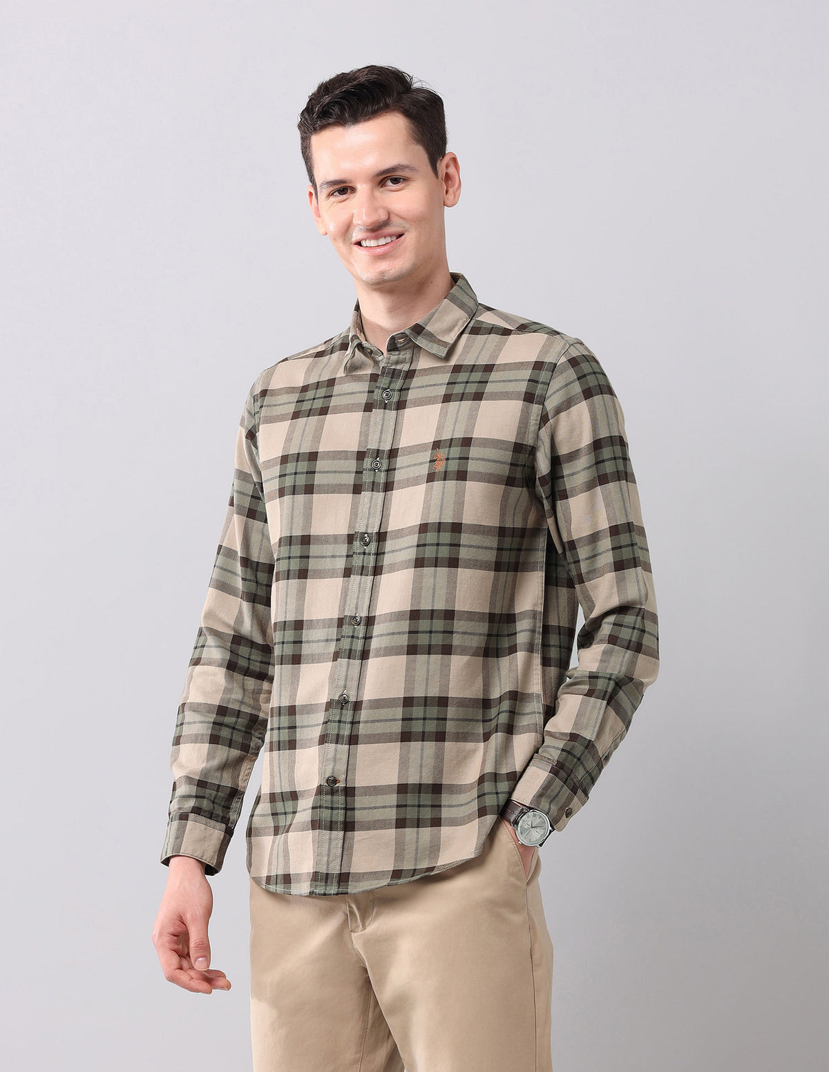 | Semi-cutaway collar | Logo at chest | Full button placket | Long sleeves with rounded cuffs | Curved hemline | Tartan checked pattern | Twill weave | Regular fit |