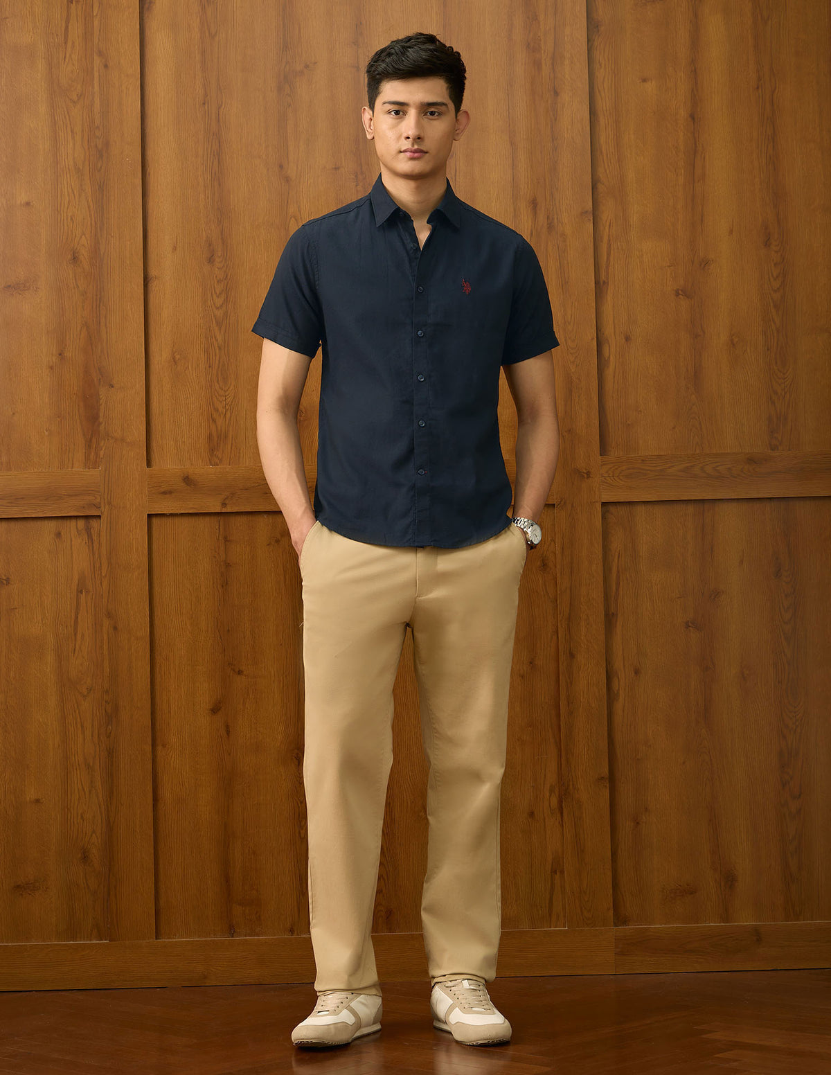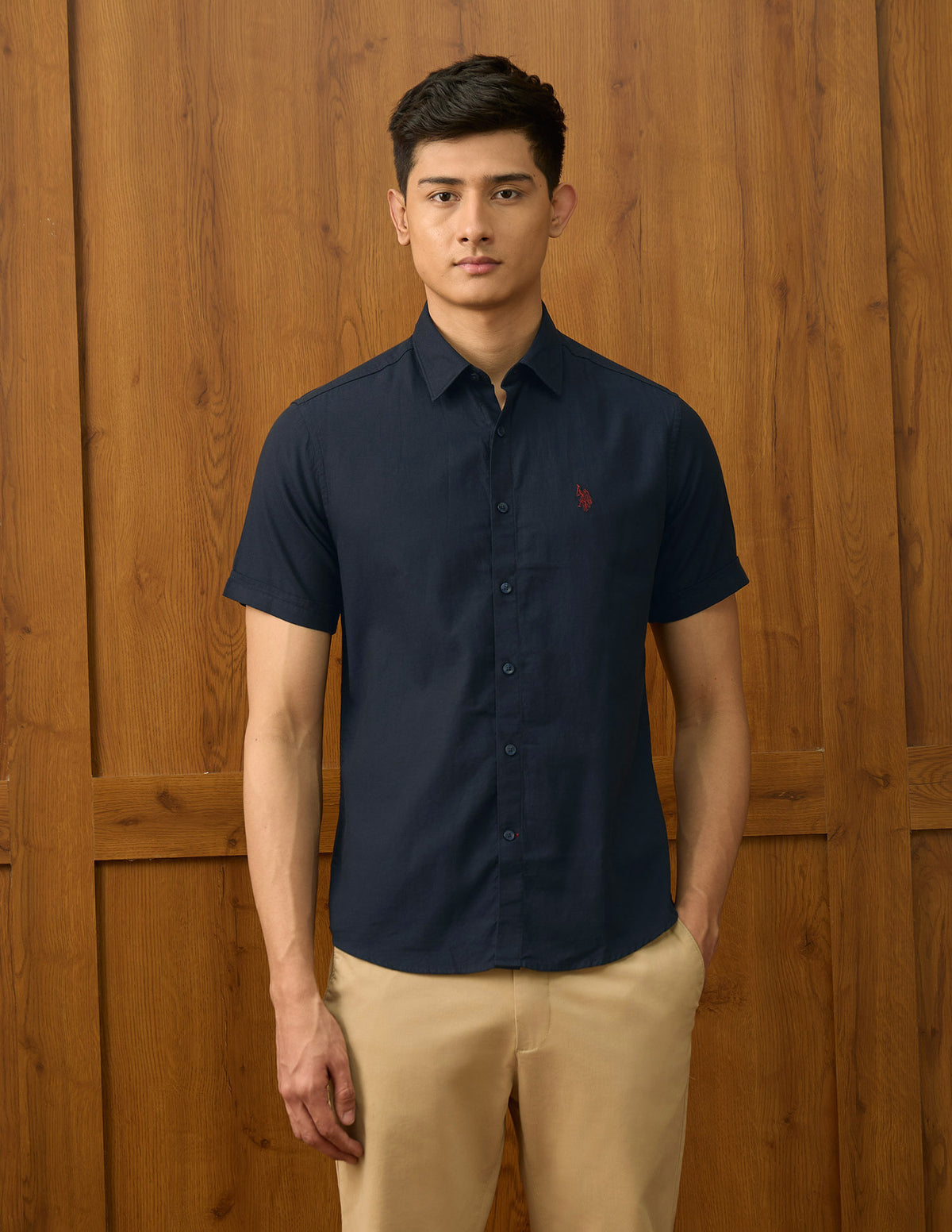 Story: Enhance your casual wardrobe with these Varsity collection men's shirts, featuring a subtle self-design pattern.