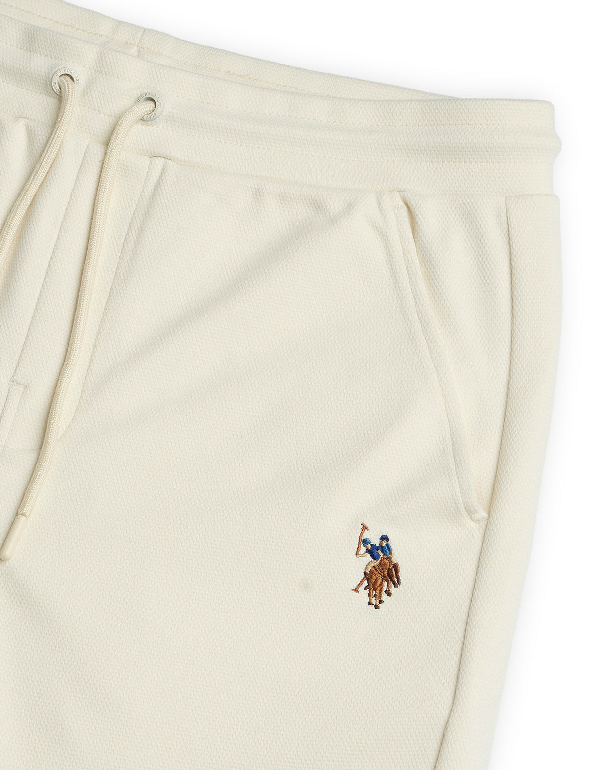 - Logo at left leg