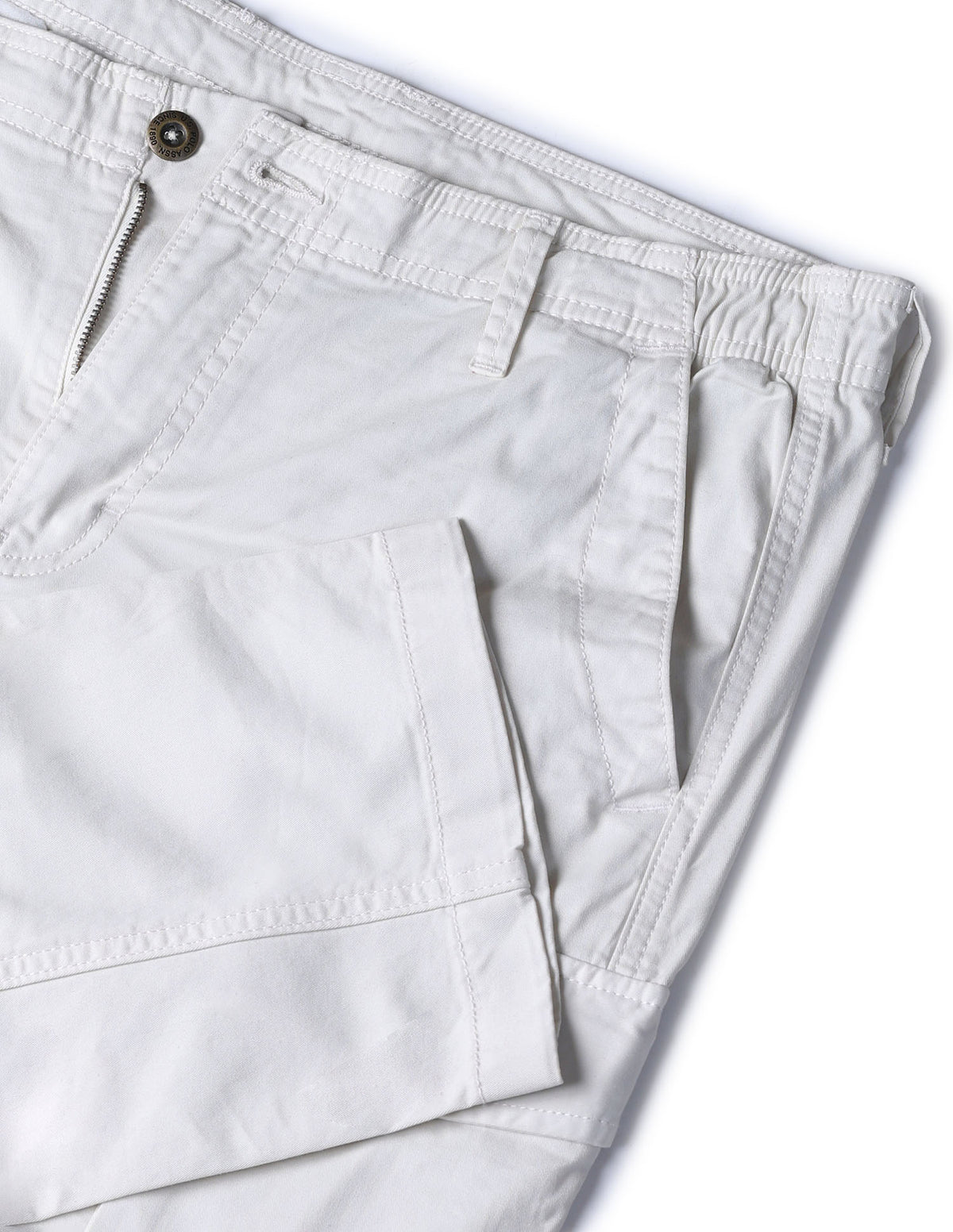 - Elasticised button and zip fly closure