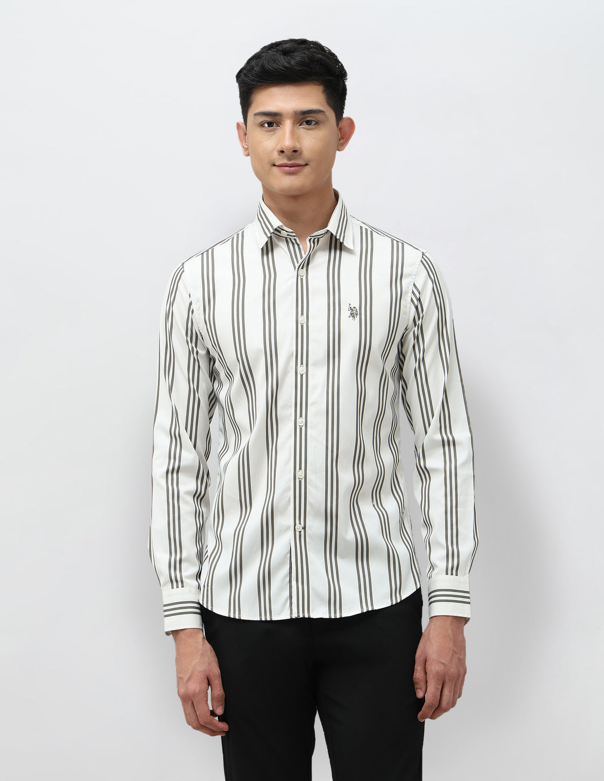 Story: This men's casual shirt with vertical stripes offers a timeless, stylish appearance.