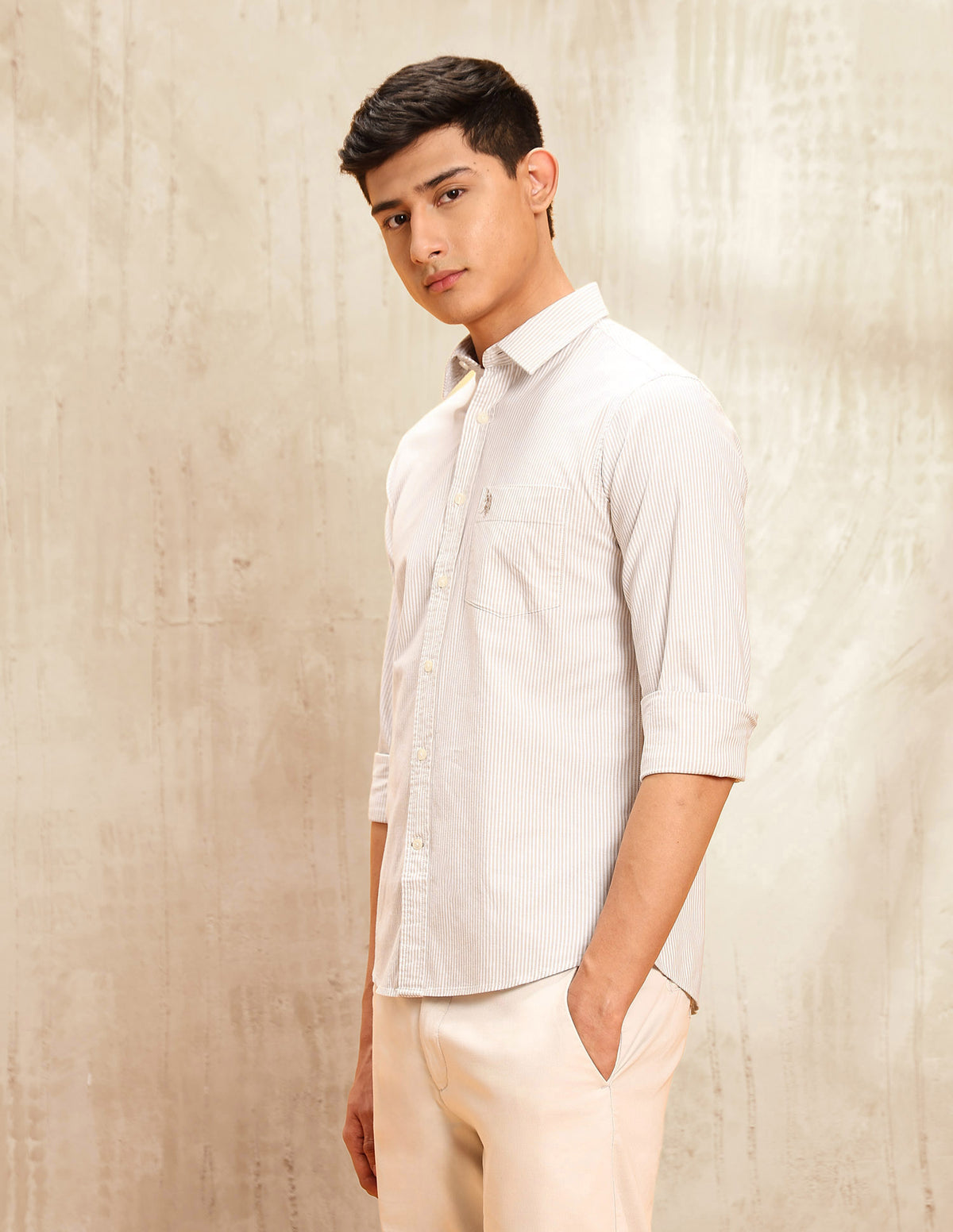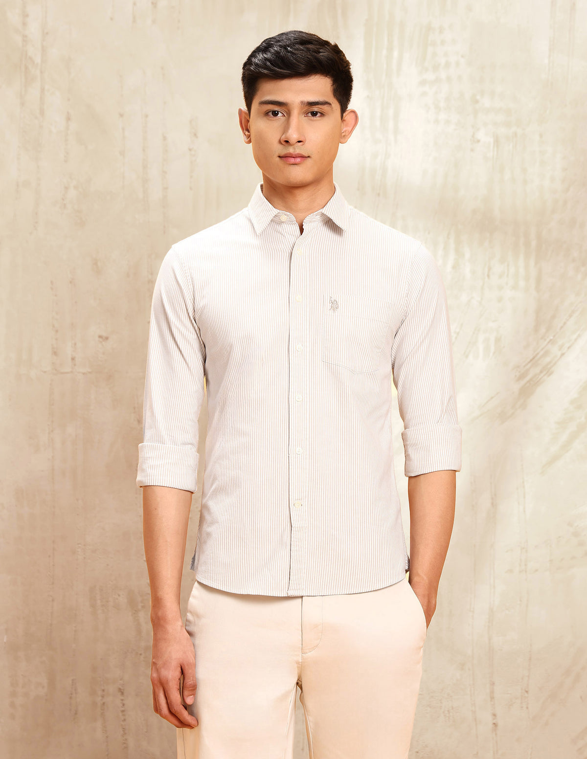 Story: Men's casual vertical striped shirt, perfect for a modern and stylish appearance.