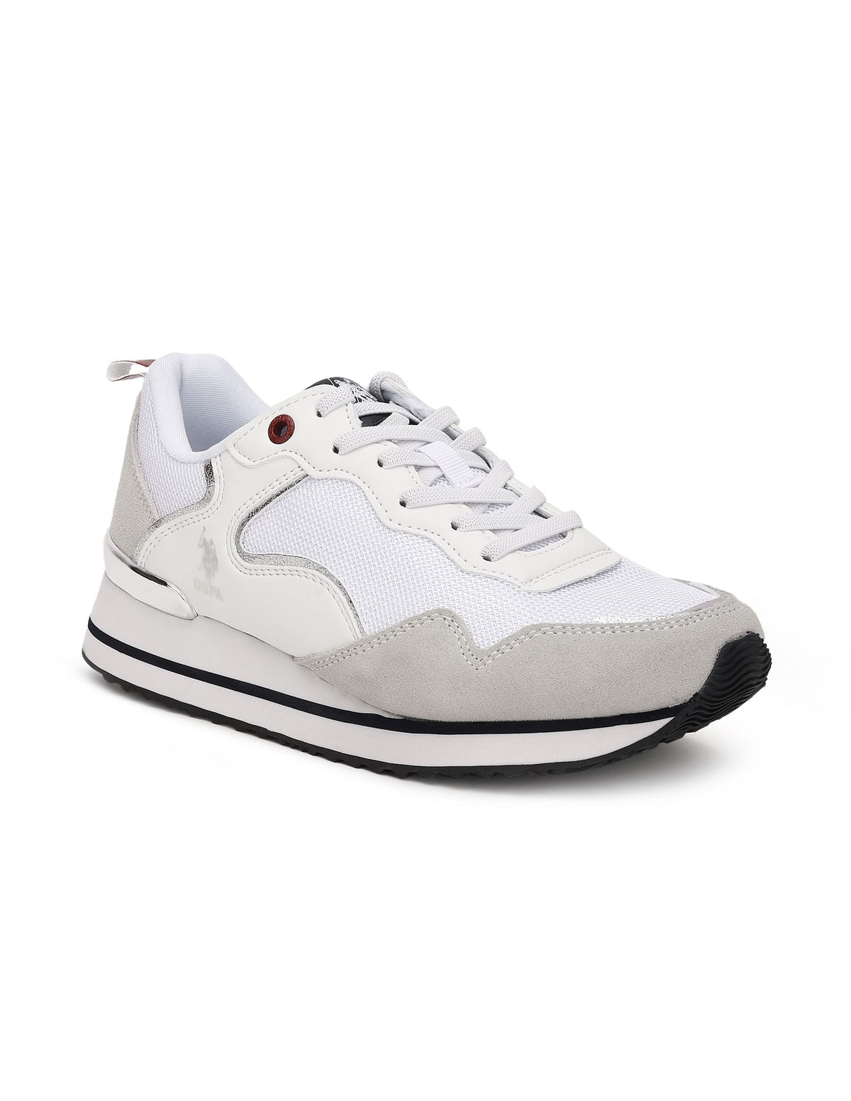 - Mesh panelled upper with metallic accents