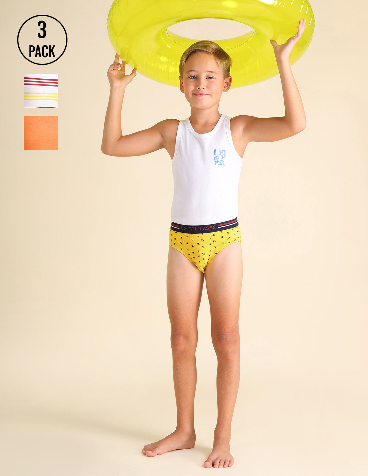 | Pack of 3: | Mid-rise sits comfortably at his waist | Elasticized waistband with branding | Double-layered pouch provides enhanced support | Full rear coverage ensures he can move with ease | Anti bacterial finish | Fabric that absorbs and breathes | One has all-over printed pattern | One has horizontal striped pattern | One is a versatile solid pattern | Knitted construction ensures you can move with ease | High on comfort and durability | Country Of Origin - India- New Season