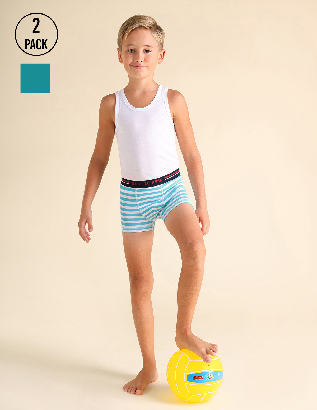 Story: Crafted from breathable cotton blend fabric these two-pack trunks keep your active little adventurers comfy all day long.