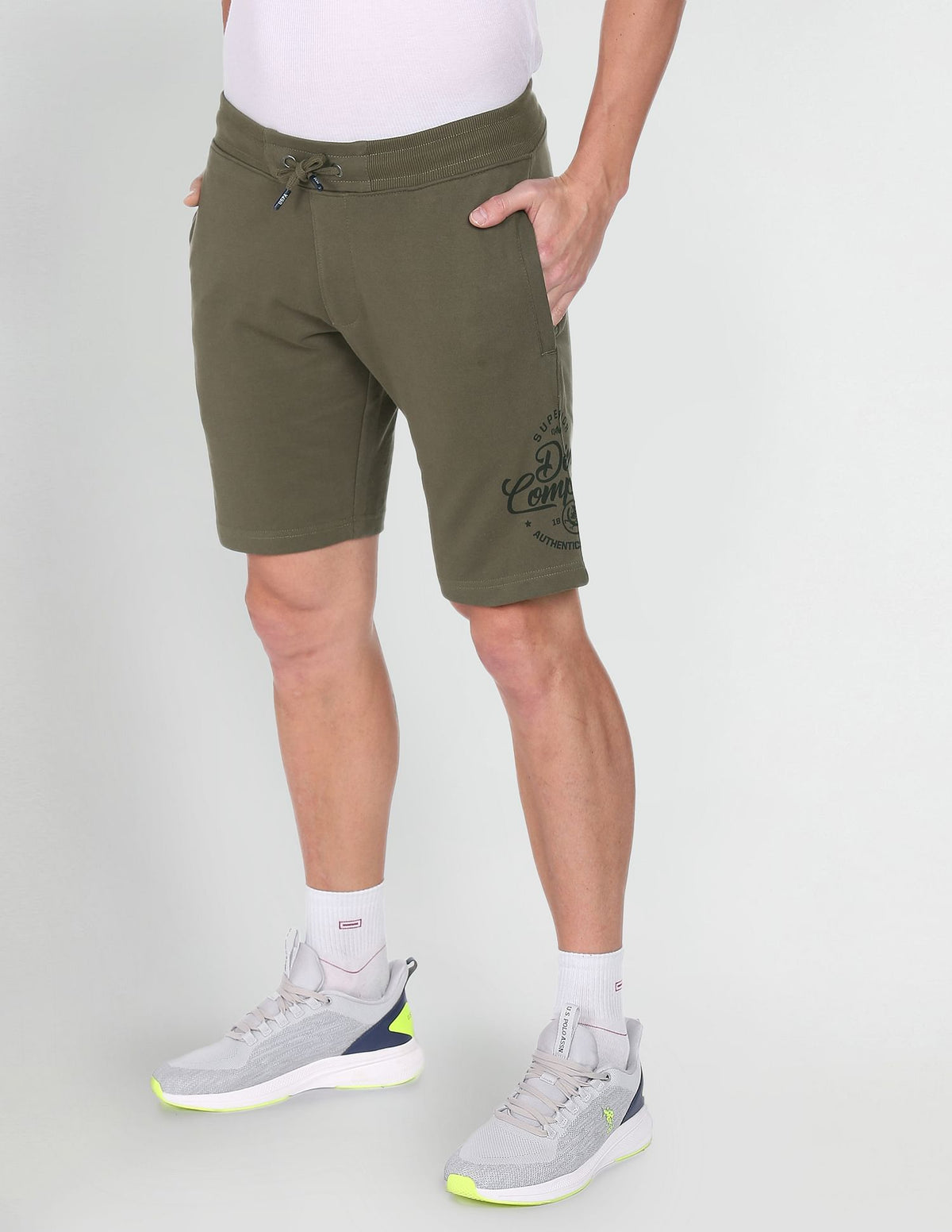 Mid Rise Drawstring Waist Brand Logo Shorts