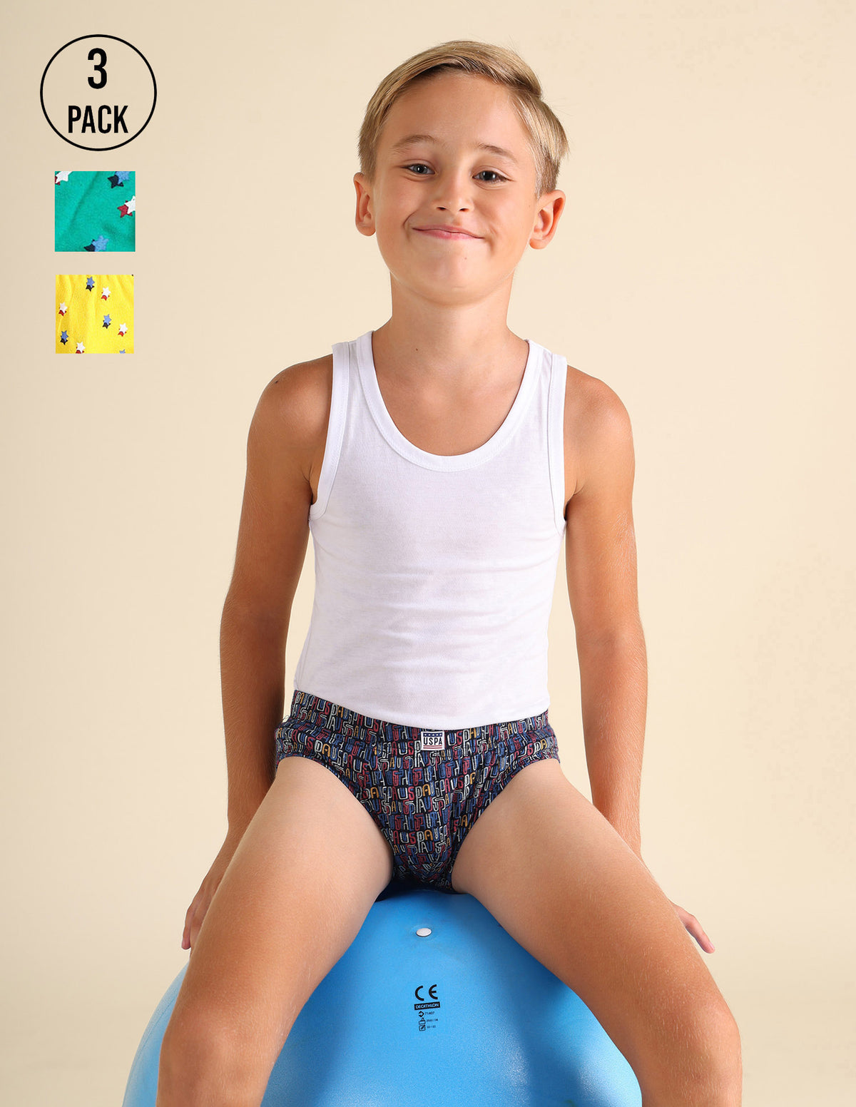 | Pack of 3: | Mid-rise sits comfortably at his waist | Stretchable waistband for better grip | Double-layered pouch provides enhanced support | Full rear coverage ensures he can move with ease | Anti bacterial finish | All-over printed pattern | Knitted construction ensures you can move with ease | Country Of Origin - India- New Season