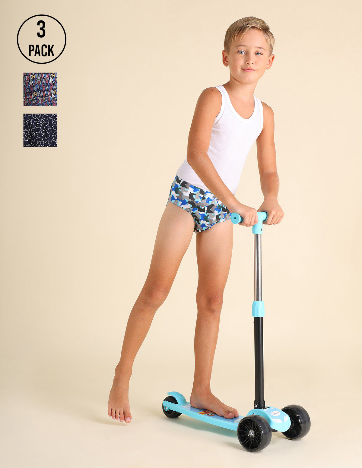 | Pack of 3: | Mid-rise sits comfortably at his waist | Soft stretchable waistband for better grip | Double-layered pouch provides enhanced support | Full rear coverage ensures he can move with ease | Anti bacterial finish | Elevated brand designed graphic | Knitted construction ensures you can move with ease | Perfect fit for all day wear | Country Of Origin - India- New Season