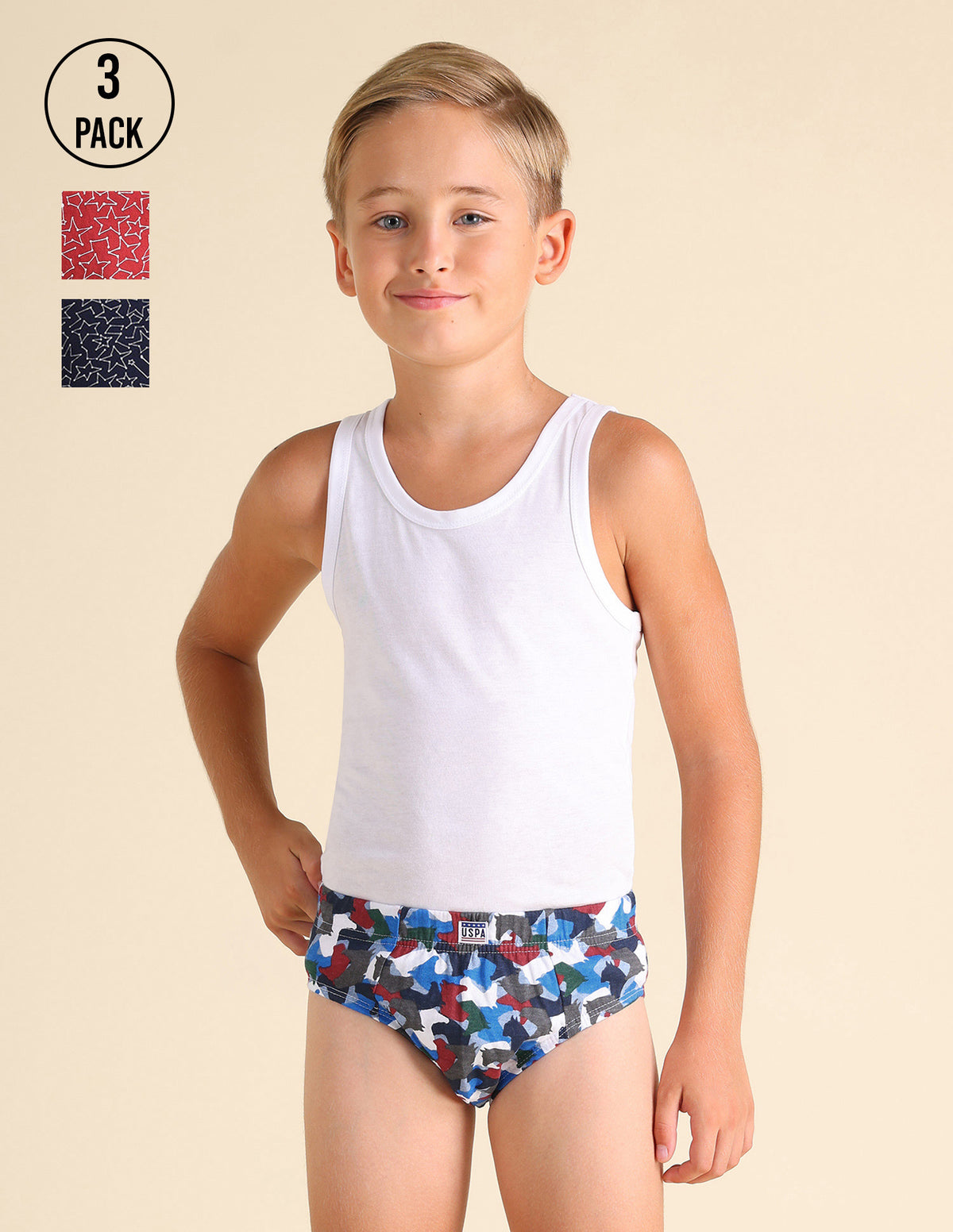 | Pack of 3: | Mid-rise sits comfortably at his waist | Soft stretchable waistband for better grip | Double-layered pouch provides enhanced support | Full rear coverage ensures he can move with ease | Anti bacterial finish | Elevated brand designed graphic | Knitted construction ensures you can move with ease | Perfect fit for all day wear | Country Of Origin - India- New Season