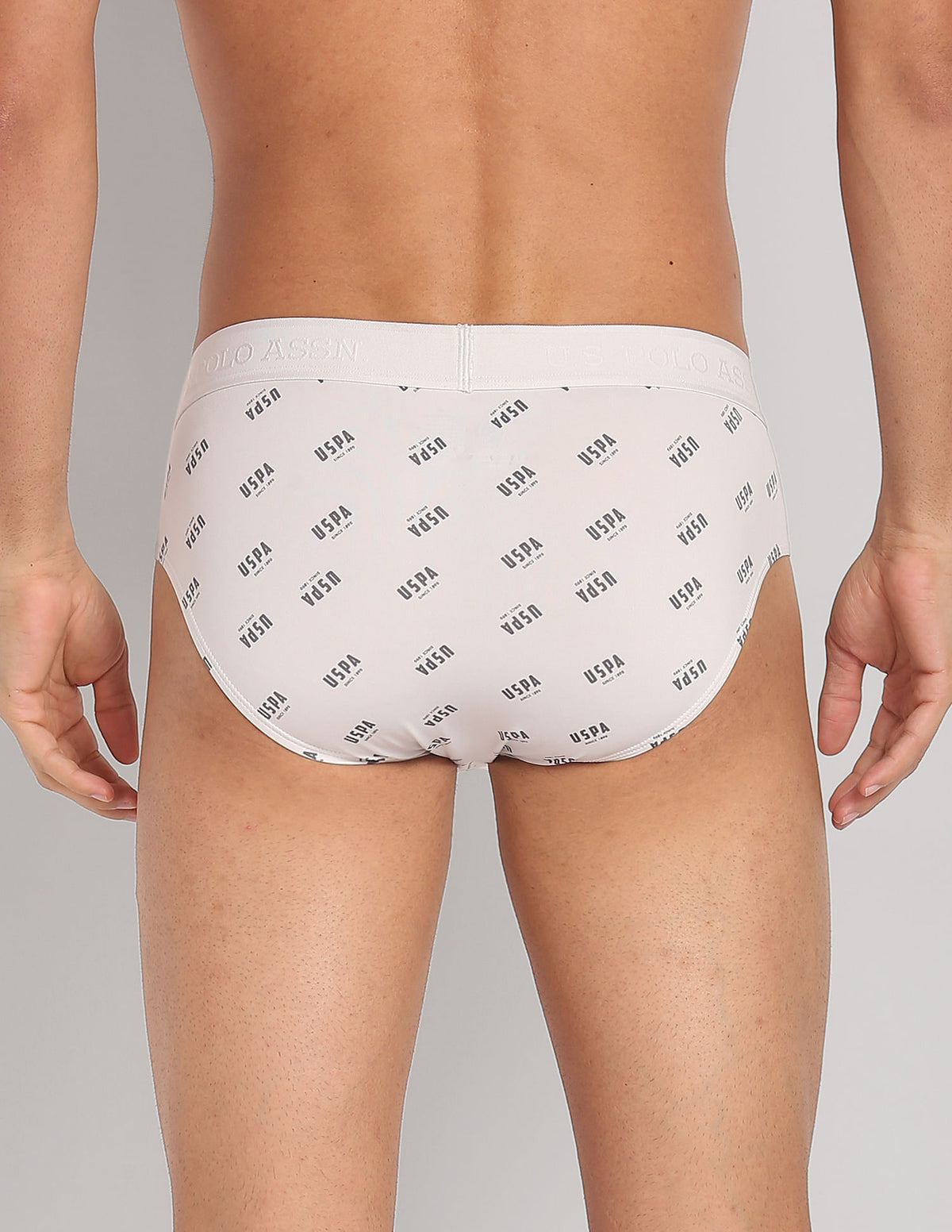 Story: These all-over printed briefs from the Active collection are made from a fine nylon blend and sit comfortably on your waist with an ultra-soft elastic waistband.