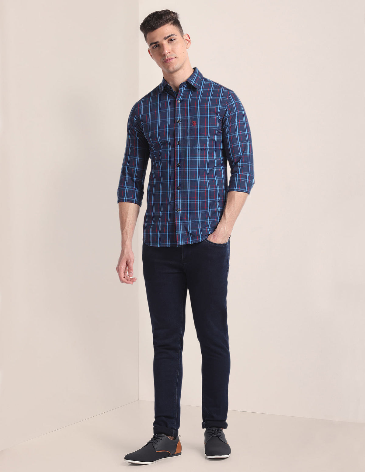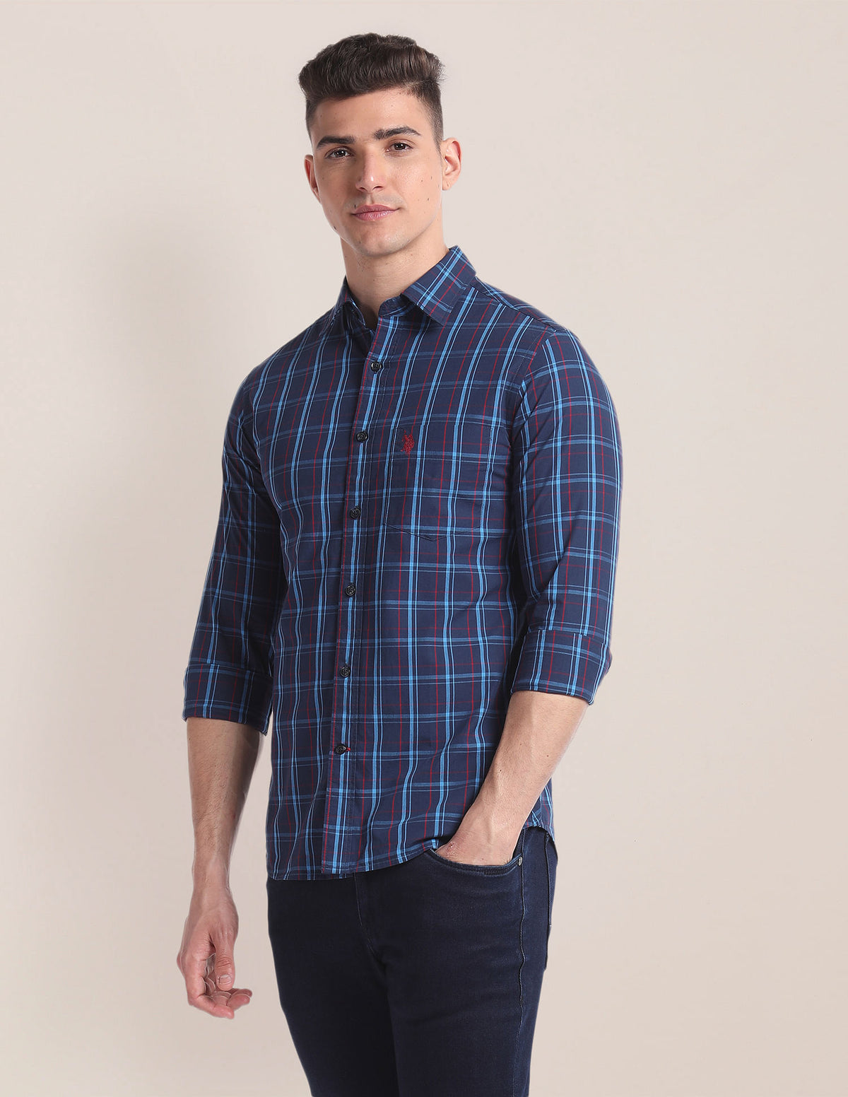 | Spread collar | Chest patch pocket | Full button placket | Long sleeves with rounded cuffs | Curved hemline | Tartan checked pattern | Regular weave | Brand fit: Tailored fit | Fit mapping: Regular fit - Summer's Fresh- New Season
