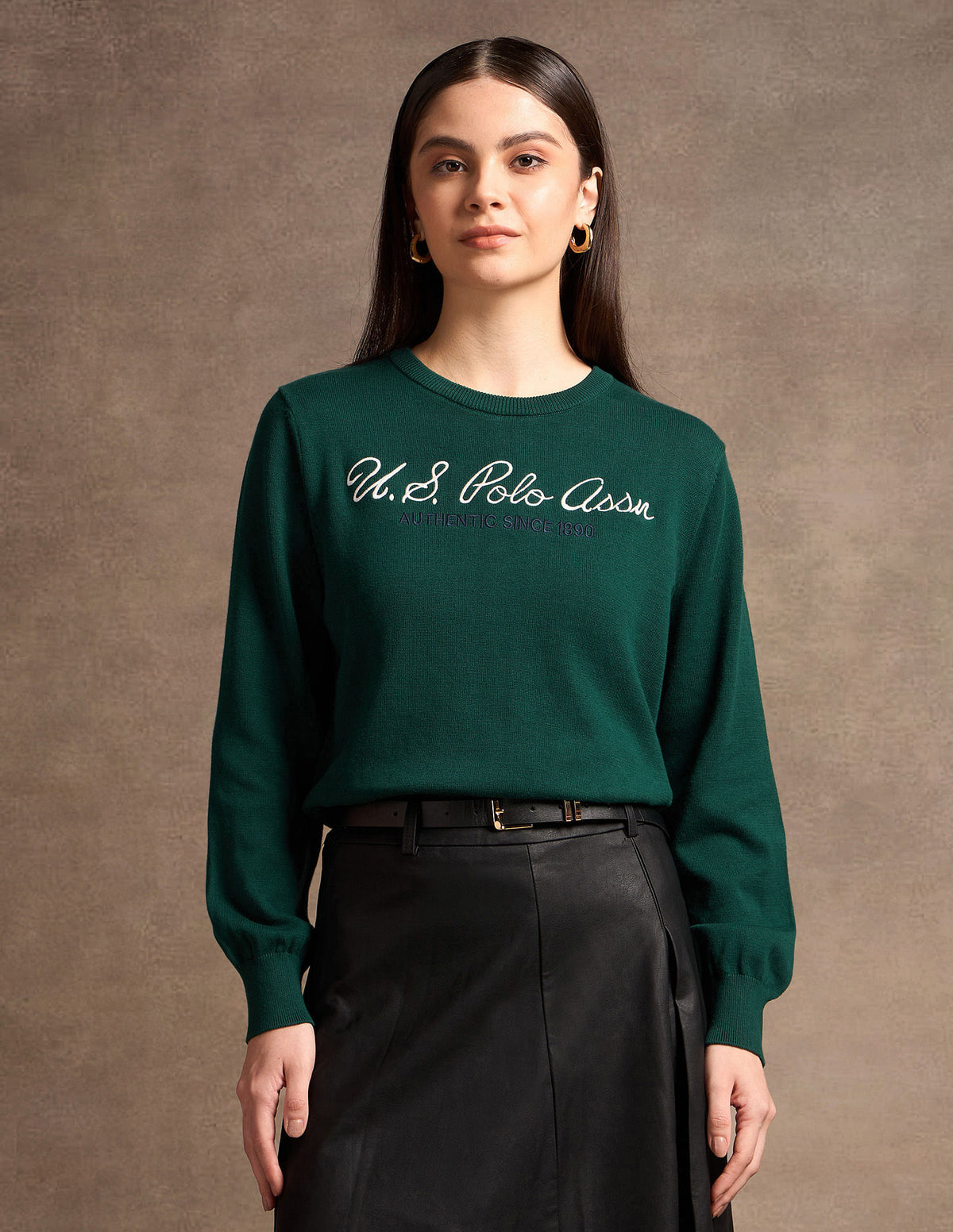 | Crew neck | Long sleeves | Ribbed neck, sleeve hems and hemline | Brand embroidered pattern | Knitted | Regular fit | Country Of Origin - India