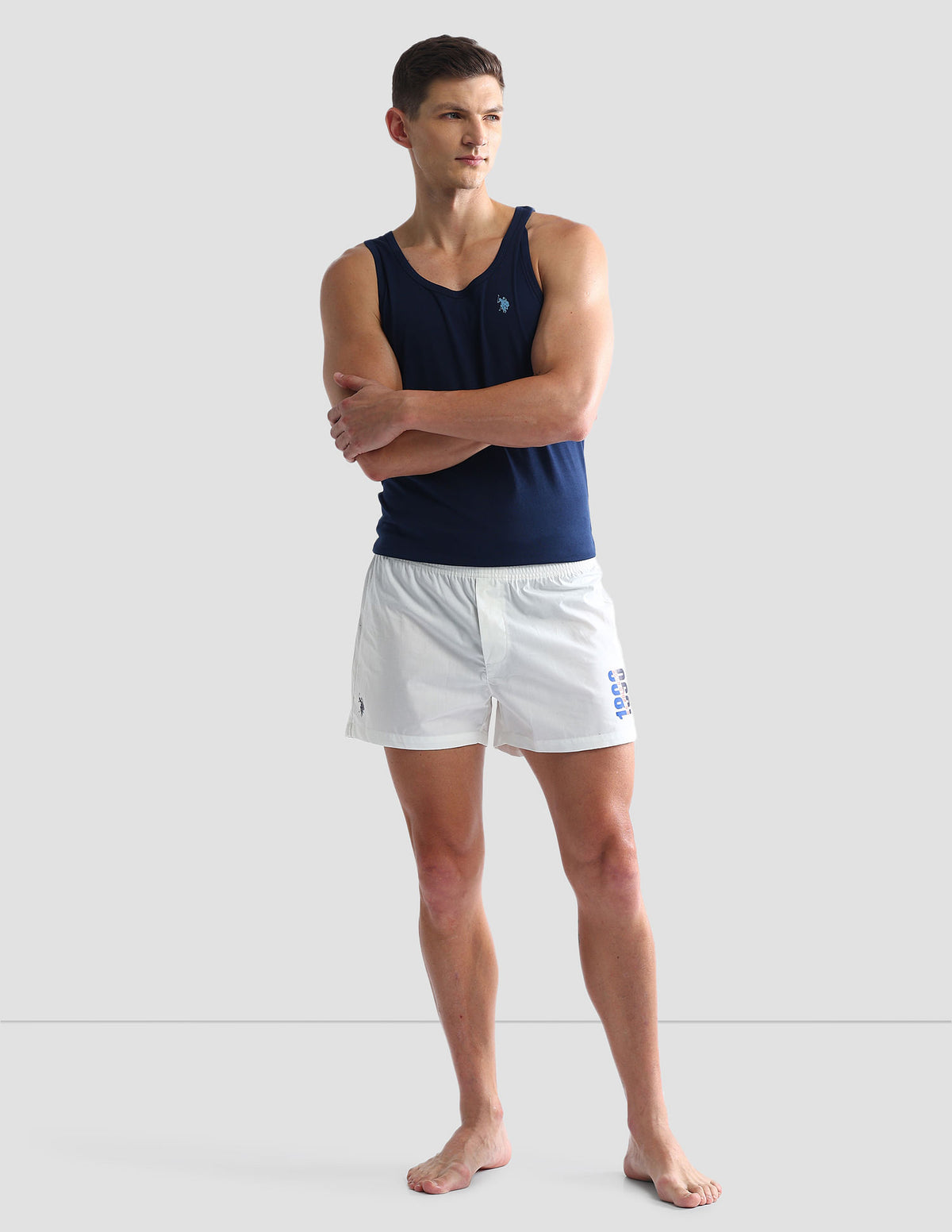 | Pack of 1: | Mid-rise sits comfortably at your waist | Elasticized waistband for better grip | Functional fly with button closure that makes it easy to slip in and out | Patch pocket at the back to store your essentials | Short length that can be worn with your pants on | Pure cotton construction makes it lightweight, highly absorbent and breathable | Solid pattern with placement graphic print makes a unique addition to lounge | The woven construction is less prone to wrinkles and creases | Country Of Origin - India