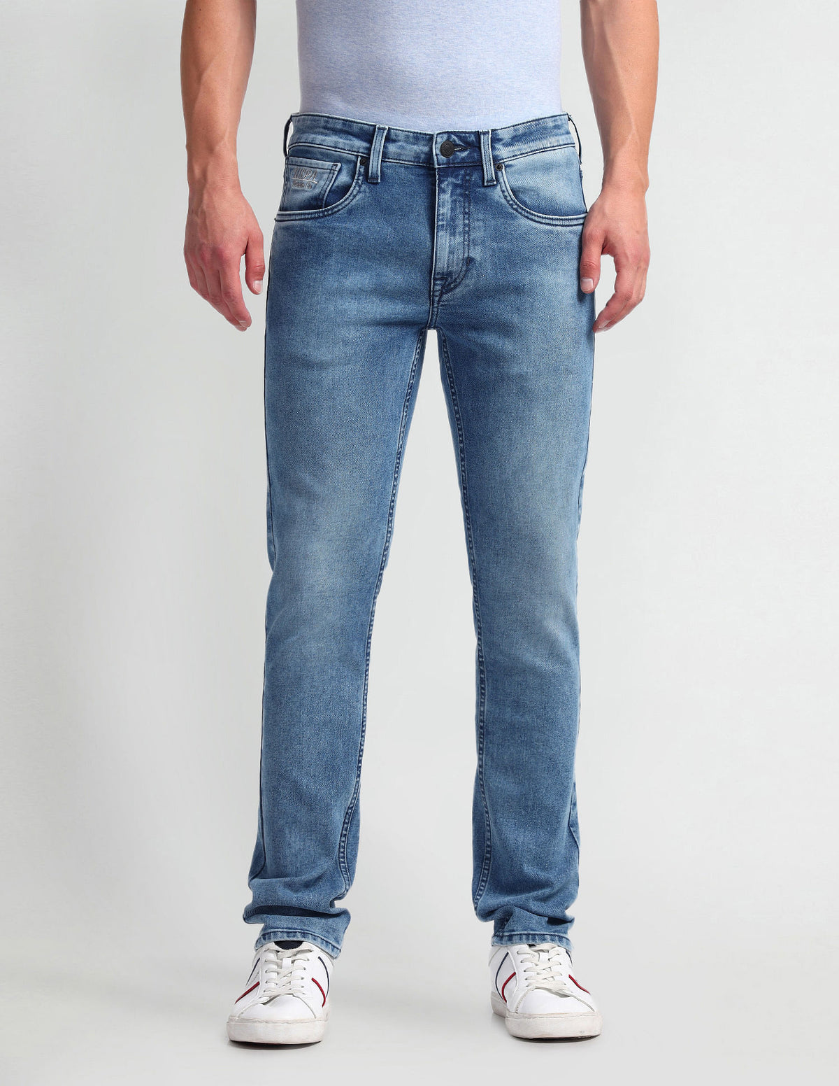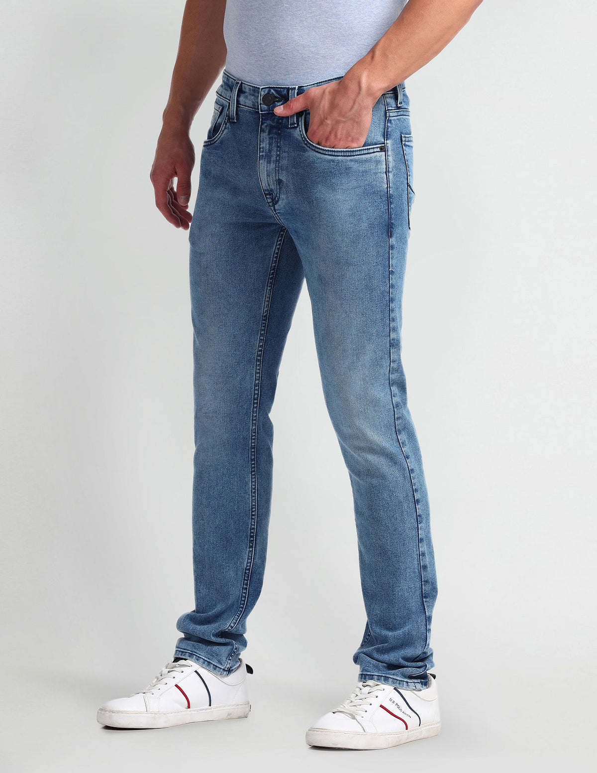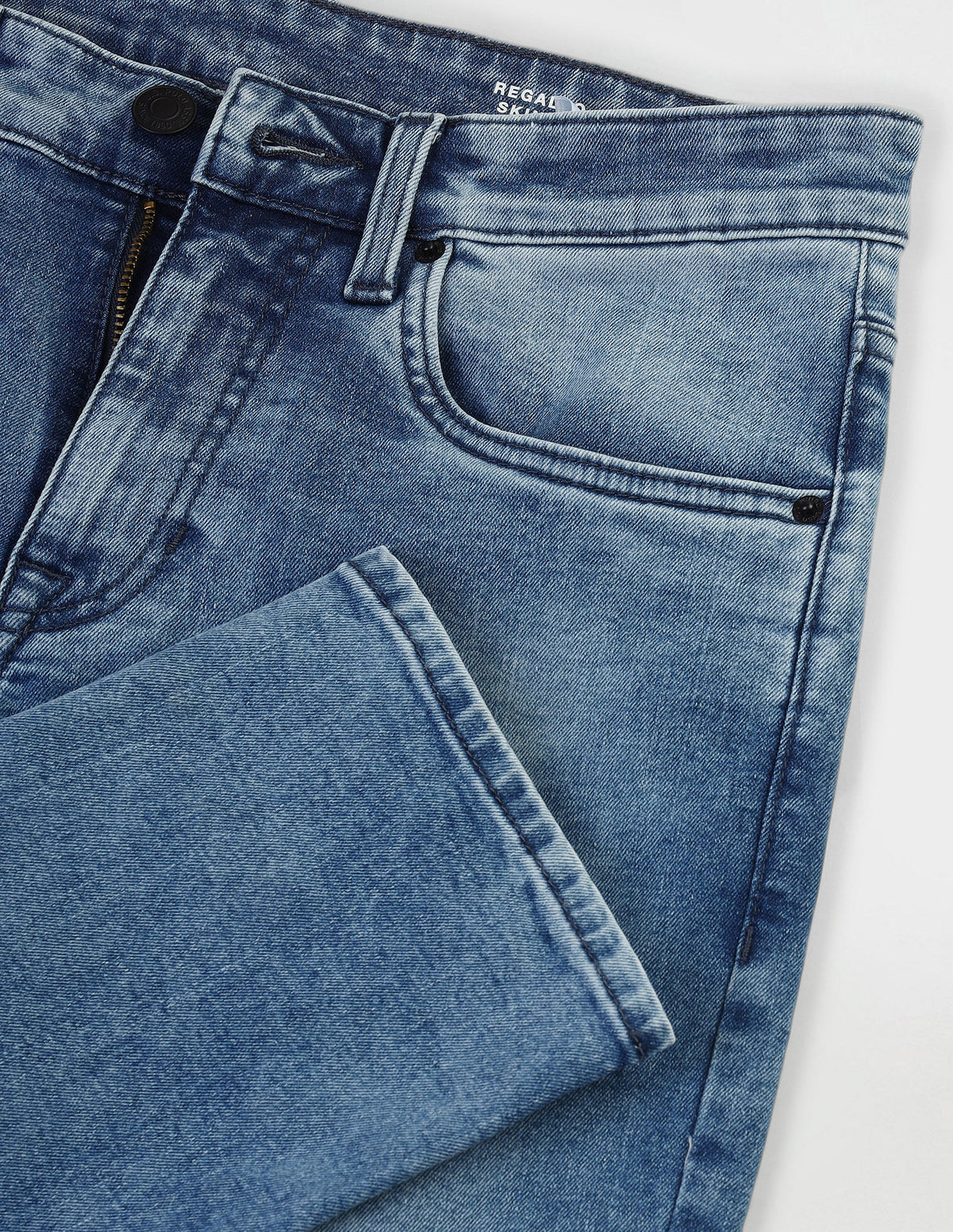 | Mid-rise waist | Button and zip-fly closure | Five pockets | Acid washed | Denim weave | Brand fit: Regallo fit | Fit mapping: Skinny fit | Country Of Origin - India| AW-24