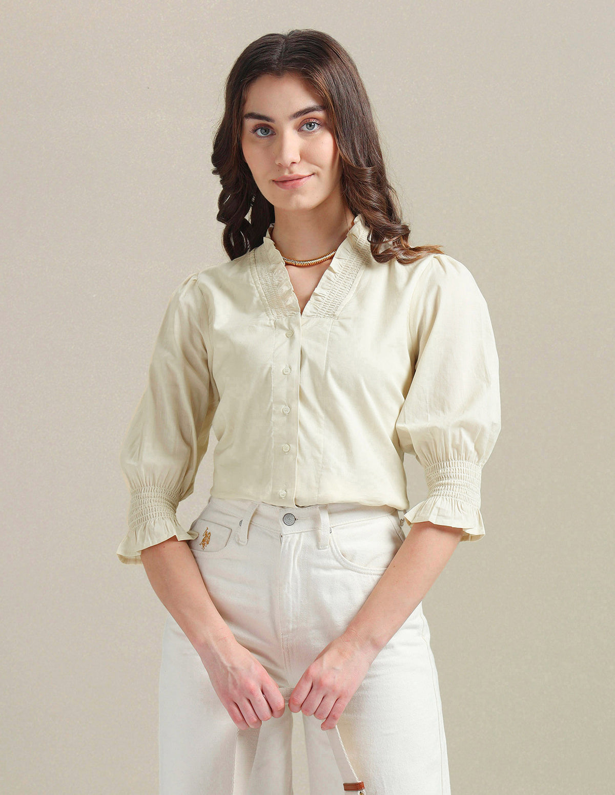 Story: This laid-back V-neck top from the Sun & Sand collection is crafted from pure cotton for a breathable and airy feel.