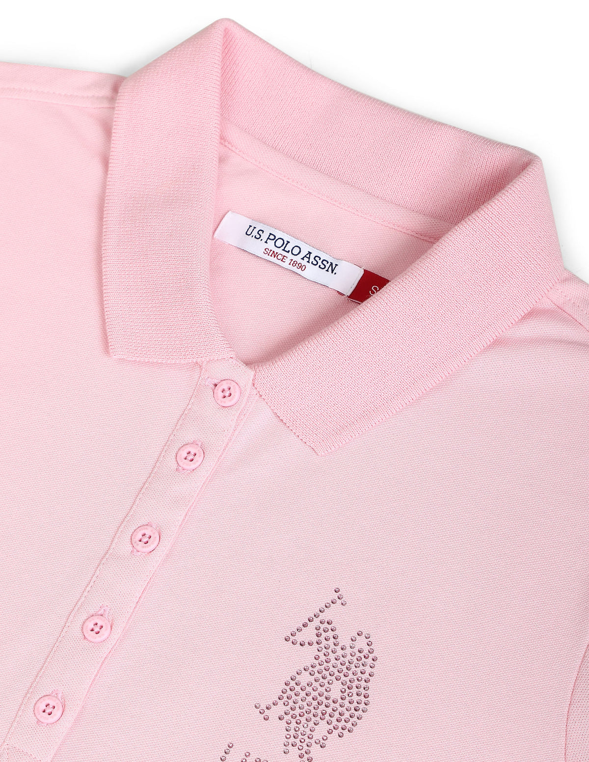Story: This slim-fit polo shirt is made of cotton blend fabric and is comfortable for a day full of activities, and the sequin logo is a show-stopper in style.