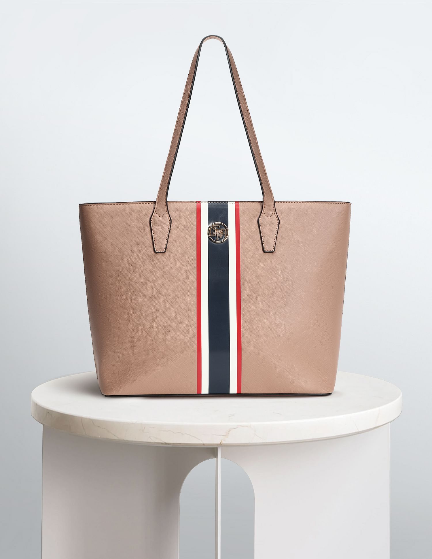 Story: This roomy tote from the City Girl collection features a minimalist aesthetic and comes with brand-striped detailing for a signature chic look.